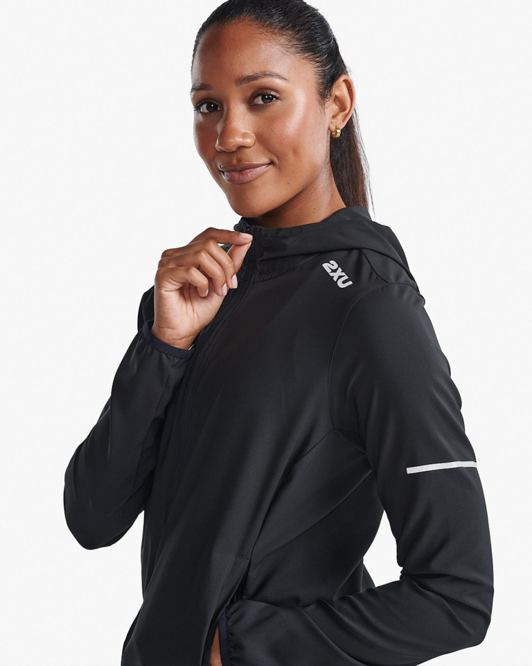 Laget av et vannavvisende woven stoff med stretch, tilbyr 2XU Aero Jacket all beskyttelsen du trenger for de kjøligere løpeturene ved daggry eller skumring.