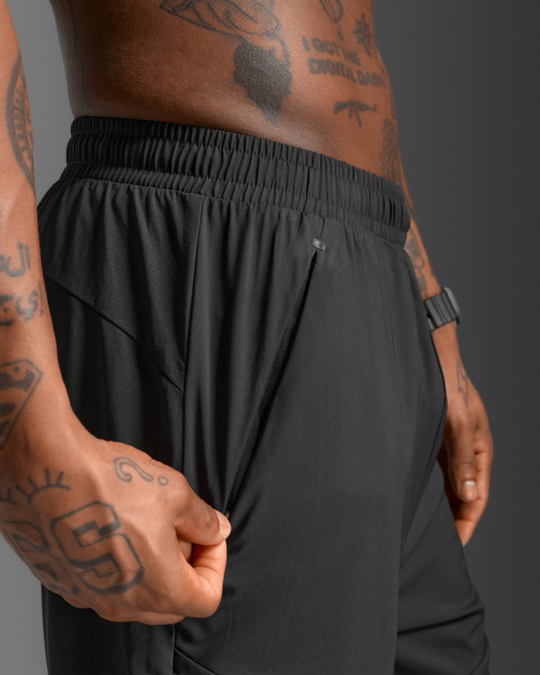 2XU Aero Woven Jogger er laget av et lettvekt woven stoff med stretch som smalner av under kneet helt ned til glidelåsene ved anklene, noe som gjør den til den perfekte buksen på løpeturen eller til/fra treningen.