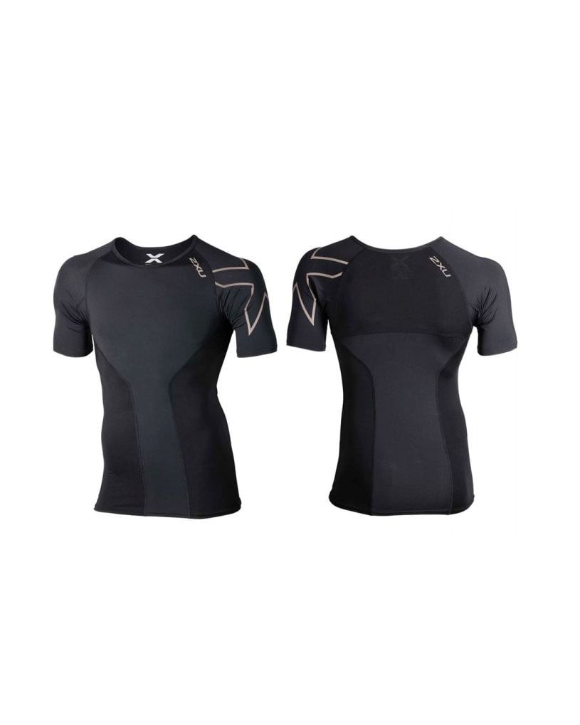 2XU Elite Compression, kortermet overdel kommer nå i en nyutviklet utgave med blant annet et meget kraftig, PWX WEIGHT panel bak på skulderpartiet. Panelet trekker skuldrene bakover, «åpner» brystet, gir en bedre kroppsholdning, forbedret pusteevne og utholdenhet.