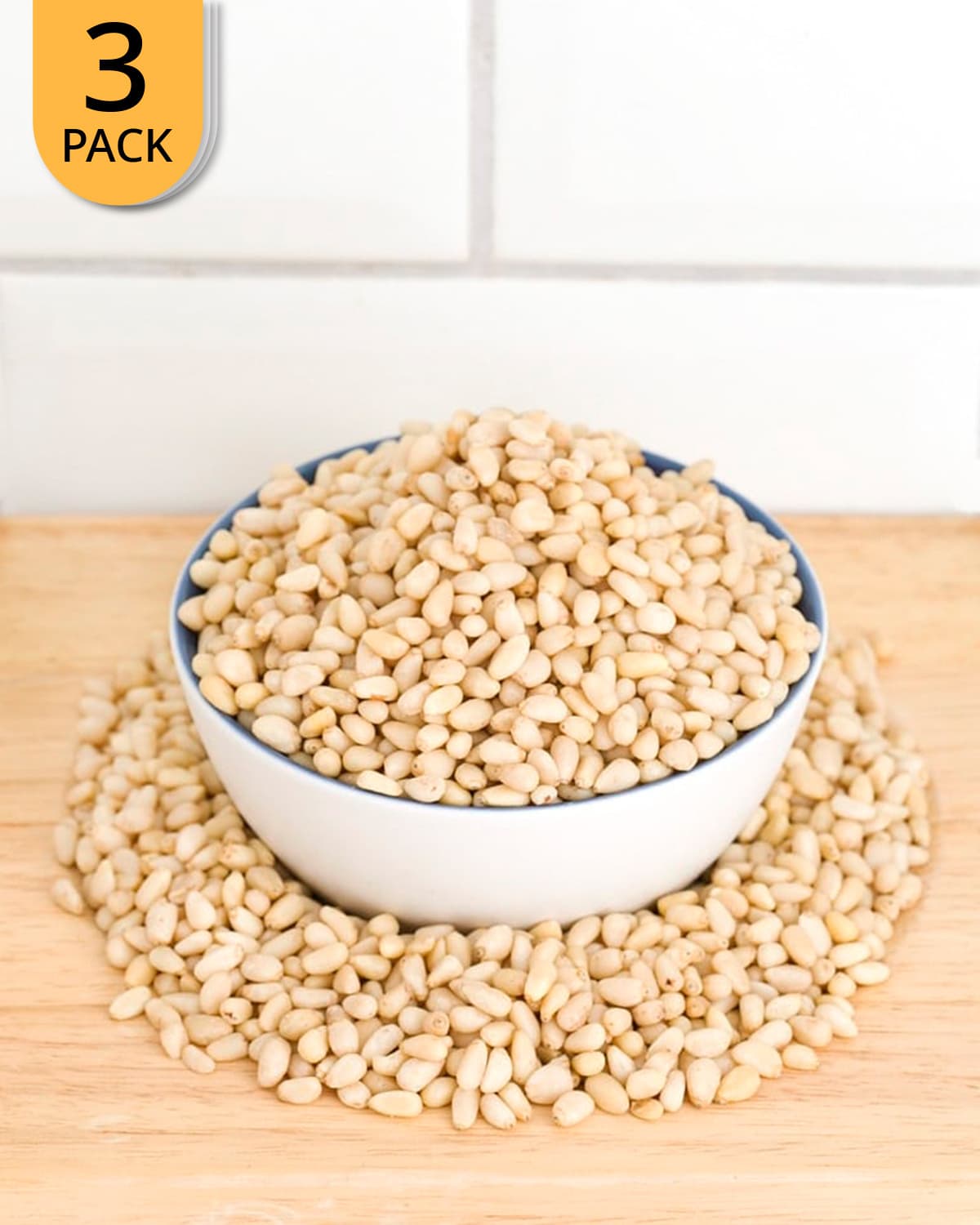Økologisk sertifisert i henhold til NL-BIO-01. Næringsinnhold 100 gram: Energi 698 kcal. Fett 68 g, Mettet fett 5 g, Karbohydrater 5 g, Sukkerarter 0 g, Fiber 10g, Protein 14 g, Salt 0.01. Ingredienser: økologiske pinjekjerner. Kan inneholde spor av peanøtter, nøtter, gluten og sesam.