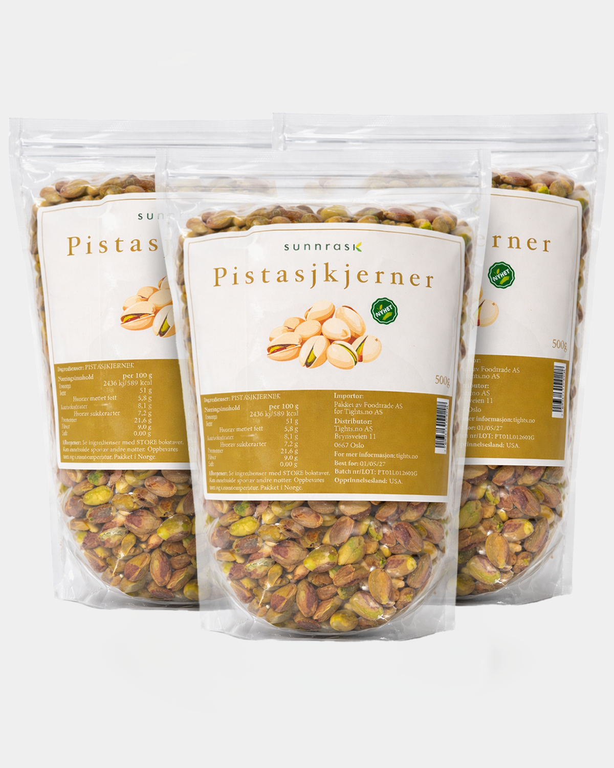 Pistasjnøtten kan spises som saltet snacks og dessuten brukes den ofte i is (pistasjis), desserter, bakverk og konfekt!