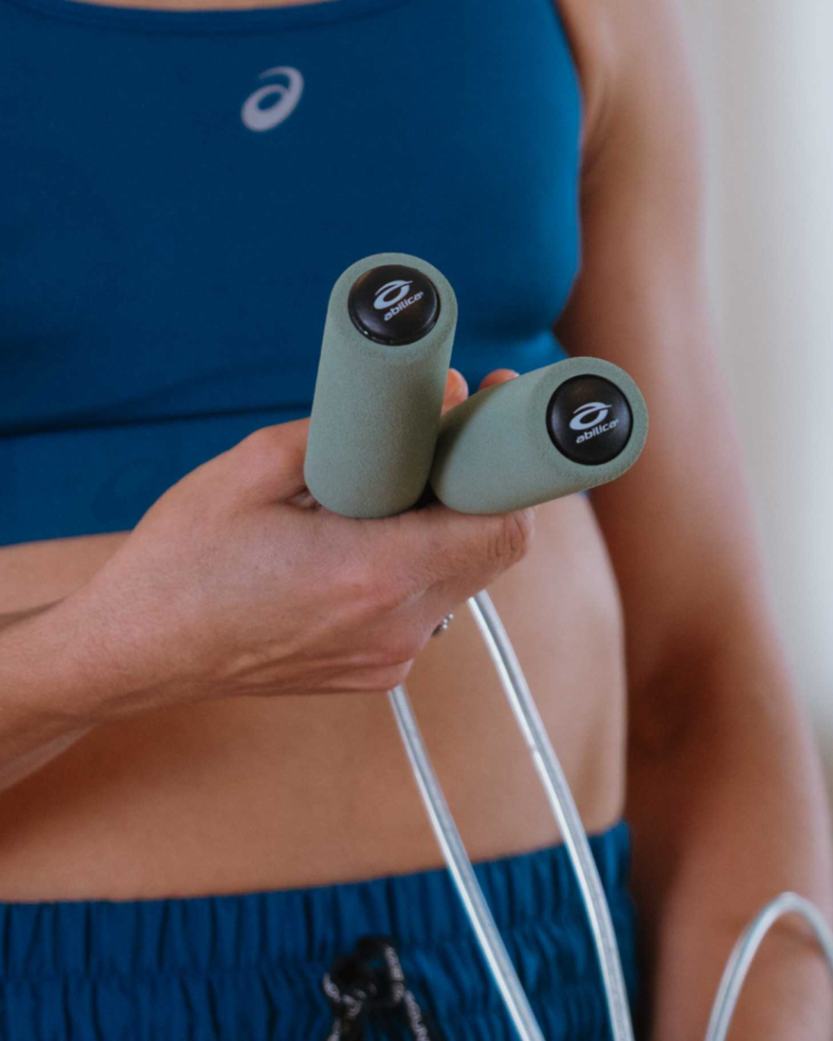 Abilica JumpUp er et slitesterkt hoppetau med plastbelagt vaier og komfortable håndtak i myk mosegummi. Takket være integrerte kulelager får du jevne og raske rotasjoner – perfekt for både kondisjonstrening, intervaller og oppvarming.
