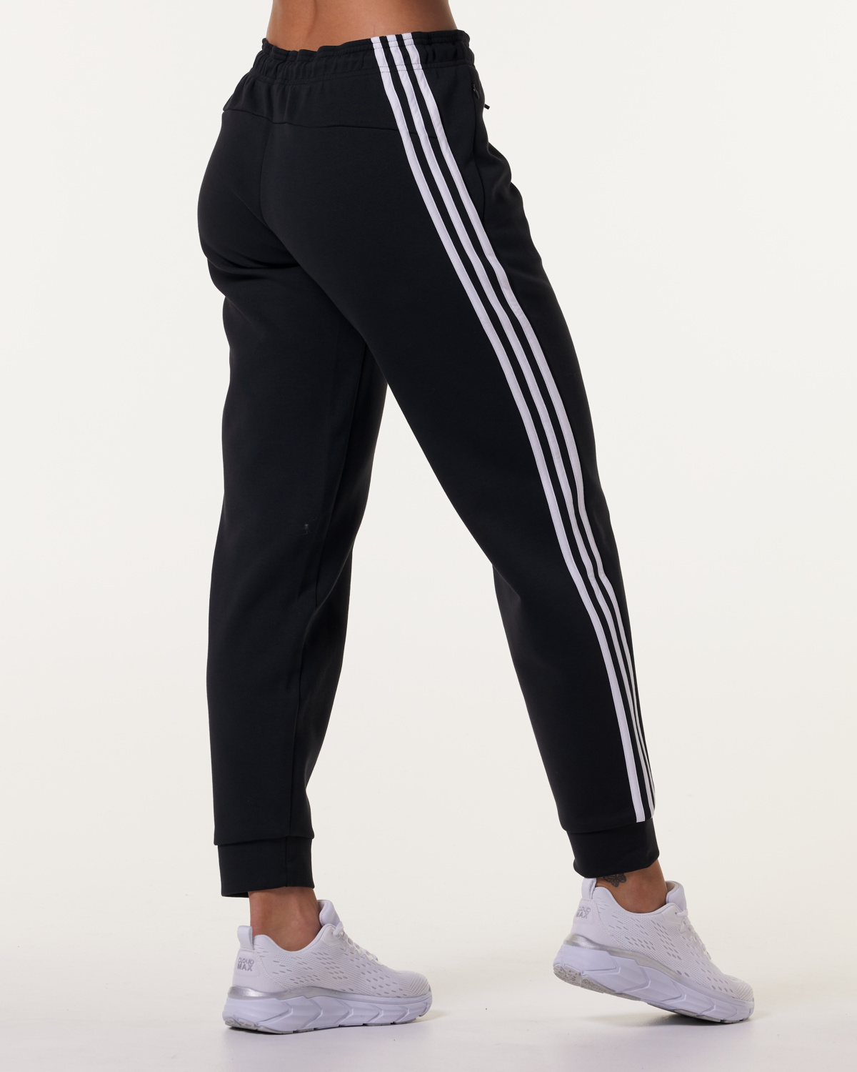 Du får de anerkjente 3-stripene nedover sidene av benet. Buksebensendene har en avsmalnede form, med justerbar strammesnor i midjen, og mykt dobbelstrikket stoff bidrar til formen og looken.