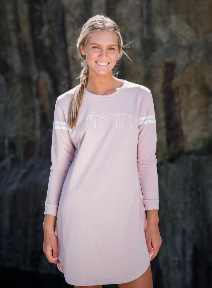 En superdeilig, sporty kjole med lange ermer! Aim'ns logo foran gir den et tøft statement-look. Kjolen er laget i 95 % bomull som gjør den behagelig i bruk. Bruk kjolen på stranden, til hverdags en solskinndag, eller hjemme i sofaen. Denne vil du digge!