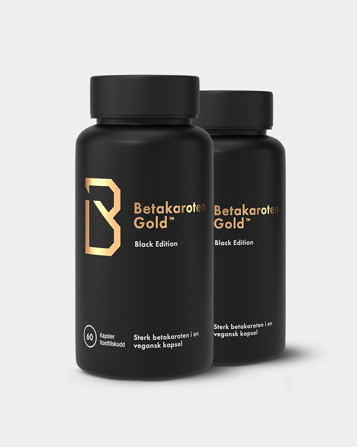 | Betakaroten Gold™ Black Edition Få en dyp og gyllen hudtone – raskt, enkelt og helt uten sol. Betakaroten Gold™ Black Edition inneholder hele 15 mg betakaroten av høy kvalitet fra grønnalger, kombinert med nøye utvalgte næringsstoffer som støtter hudens naturlige glød og bidrar til en jevn og strålende hud. Den høykonsentrerte formuleringen er utviklet for deg som ønsker en mer intens farge og tydelige resultater – enten du vil forberede huden før solsesongen eller opprettholde en frisk glød gjennom hele året. Produktet er tilsatt kobber som bidrar til normal hudpigmentering, samt biotin som bidrar til å opprettholde normal hud. Vitamin C bidrar til normal kollagendannelse, som er viktig for hudens normale funksjon, og bidrar til å beskytte cellene mot oksidativt stress. Betakaroten Gold™ Black Edition er 100 % vegansk og utviklet for deg som ønsker en effektiv og enkel måte å oppnå en naturlig gyllen glød – uansett sesong.