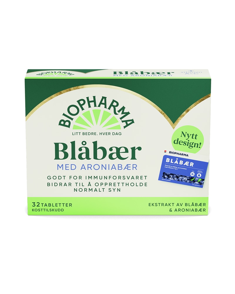 Biopharma Blåbær er et kosttilskudd med ekstrakt av blåbær og aroniabær, kombinert med vitamin A og vitamin C. En nøye sammensatt formel utviklet for deg som ønsker daglig støtte til immunforsvaret og normalt syn, basert på velkjente næringsstoffer.