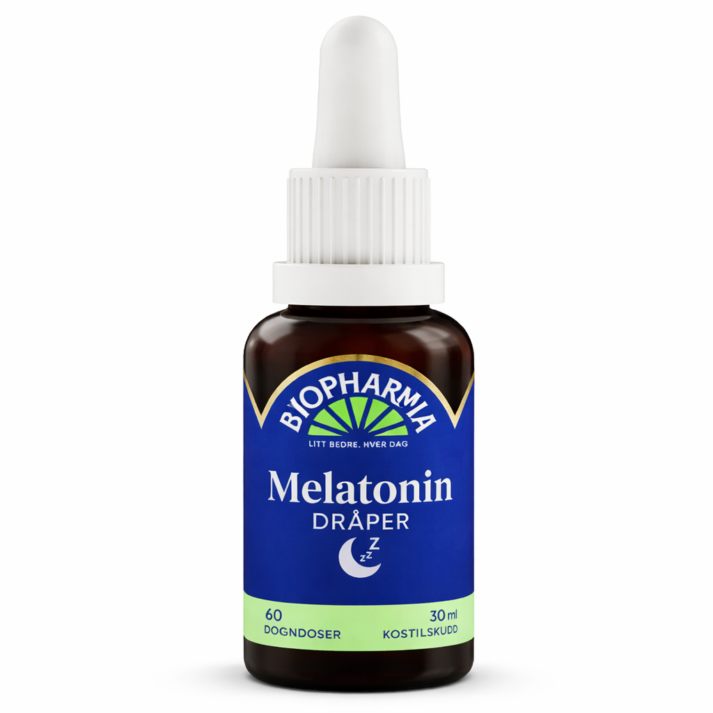 Biopharma Melatonin Dråper er et kosttilskudd som kan bidra til bedre søvnkvalitet, redusert innsovningstid og til å lindre den subjektive opplevelsen av jetlag. Produktet har en mild, søt smak som gjør det enkelt å innta, og er lett å dosere enten ved å telle antall dråper eller ved å bruke merkingen på pipetten.