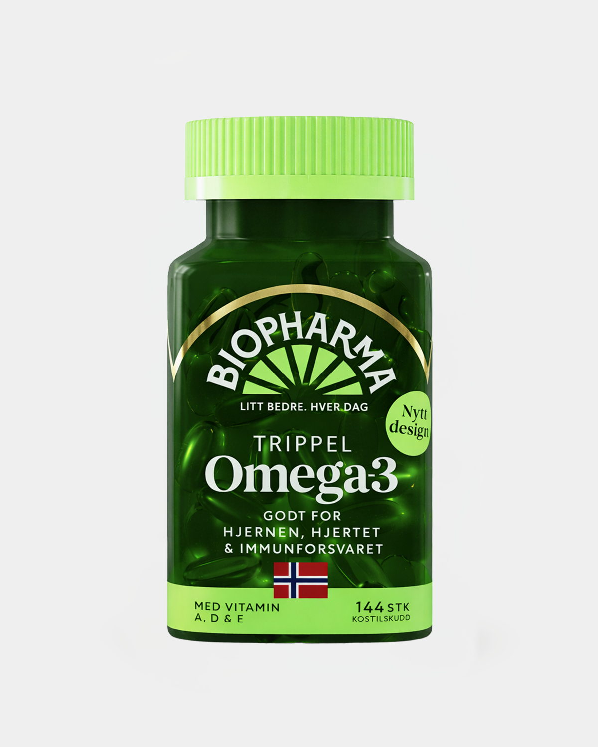 Biopharma Trippel Omega-3 er et omega-3-tilskudd utviklet for deg som ønsker en sunnere hverdag, med støtte til hjerte, hjerne og immunforsvar.