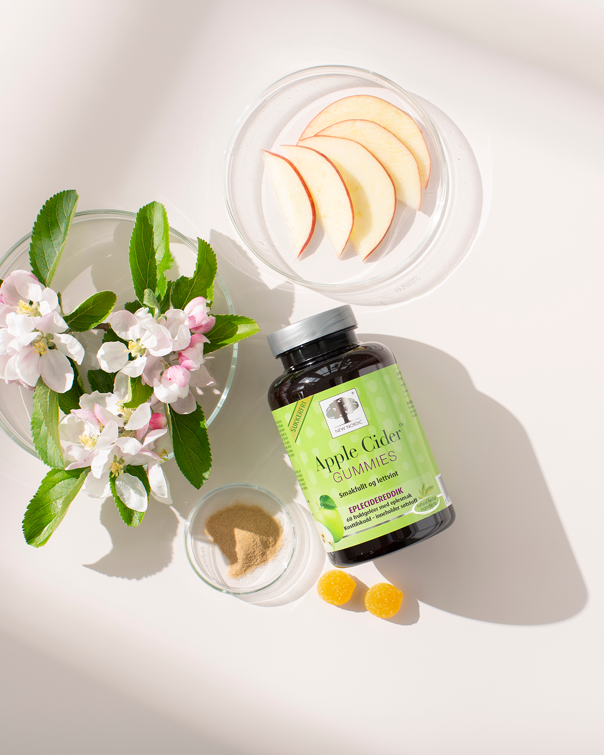 Eplesidereddiken i denne gummien tilberedes av nøye utvalgte epler som er kaldpresset til mos. Den ferske mosen gjæres til eddik ved å tilsette «Mother of Vinegar», eddiksyrebakterier. Eplesidereddiken tørkes deretter til pulver. Denne skånsomme prosessen er din garanti for at produktet har den gode kvaliteten hvor naturens egne virkestoffer er bevart.