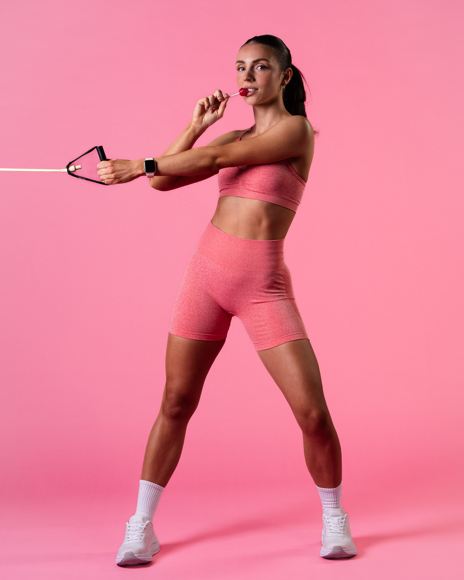 Utrolig komfortable og fine shorts med hudnær passform. Du får bred og ribbestrikket midjebånd (12,7 cm), med BumPro-logoer strikket rundt midjen. Du får tricotstrikket rumpeparti og strukturstrikket del rundt rumpen. Beinendene er også ribbestrikket. Disse ribb-detaljene fremhever dine feminine kurver, gir shaping-effekt og virker flatterende.