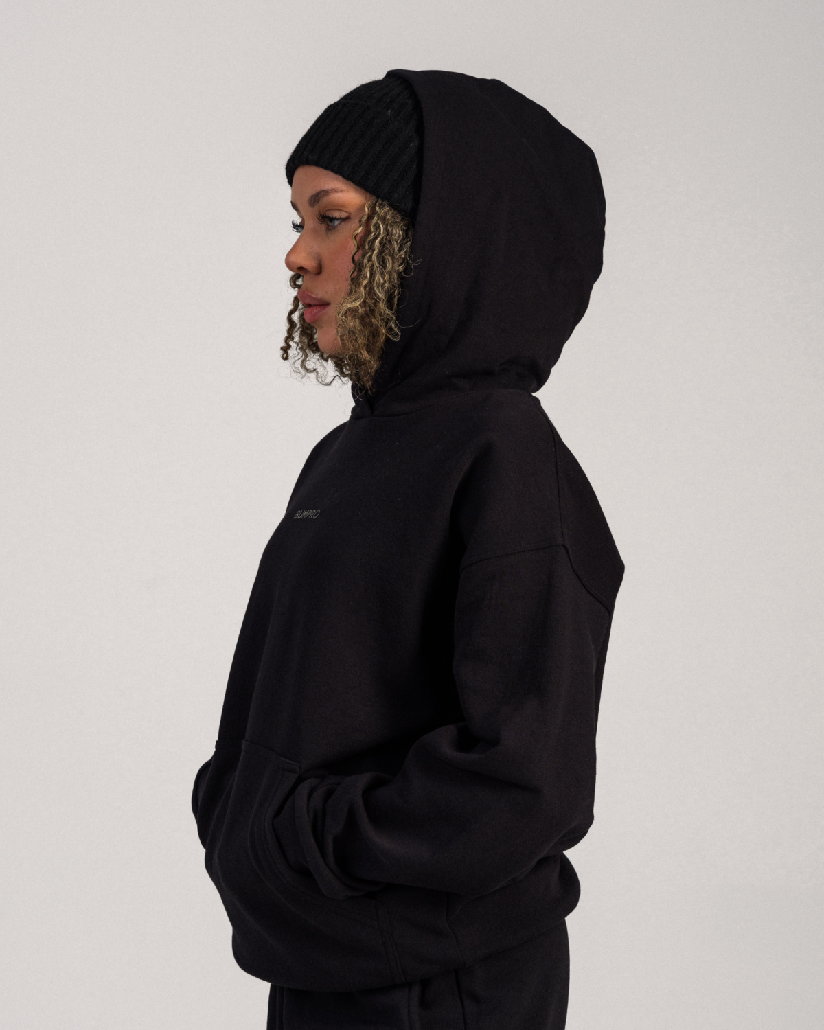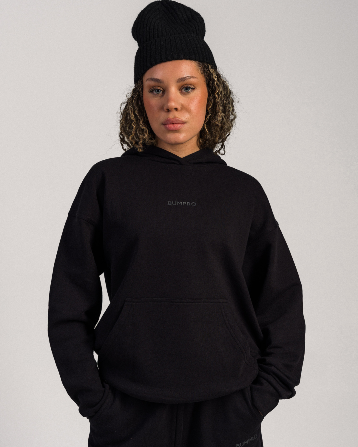 Hoodien har en børstet innside som føles ekstra myk mot huden, og gir lun komfort før og etter økten. Den praktiske frontlommen gir både funksjon og et klassisk hoodie-look.