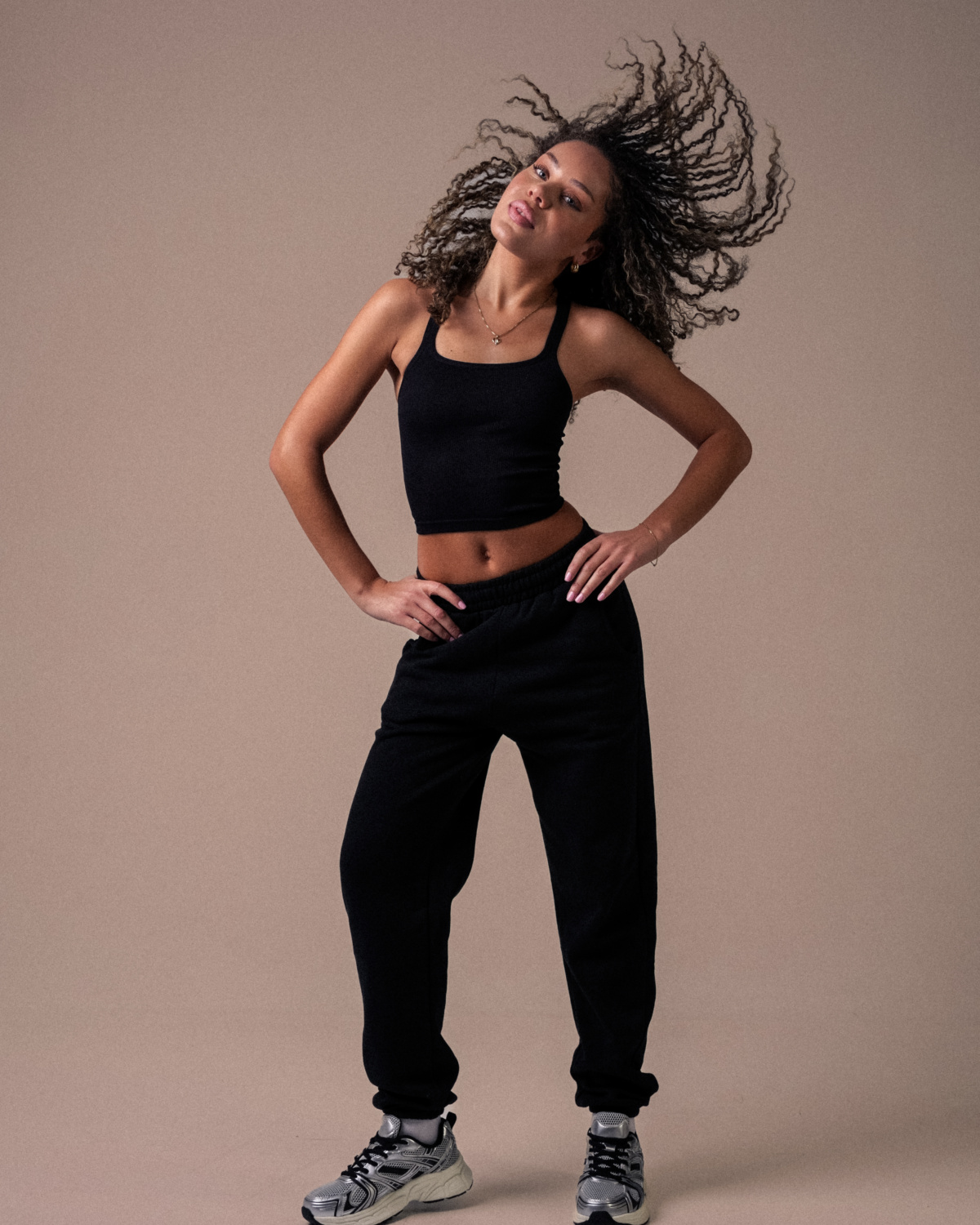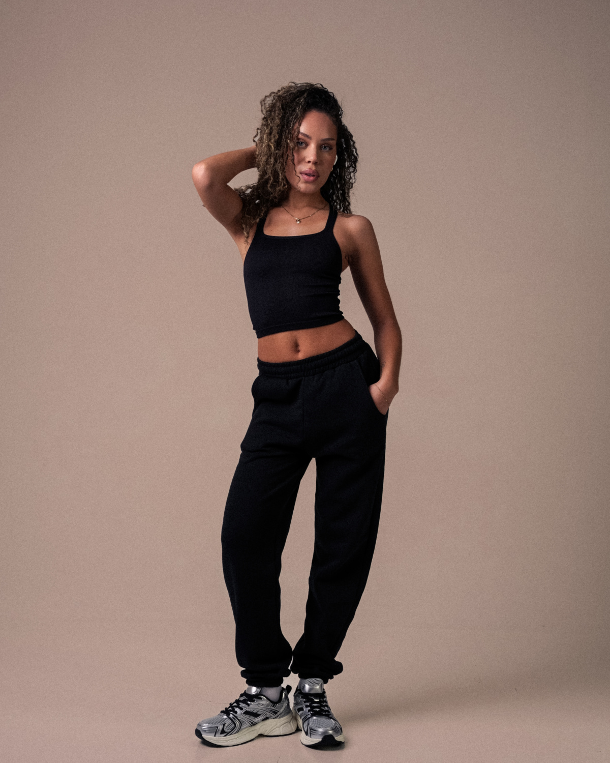 Med en løs passform og justerbare snorer i midjen, kan du enkelt tilpasse buksen etter dine preferanser. Det er også en logo på forsiden av buksen som gir et stilfullt utseende.