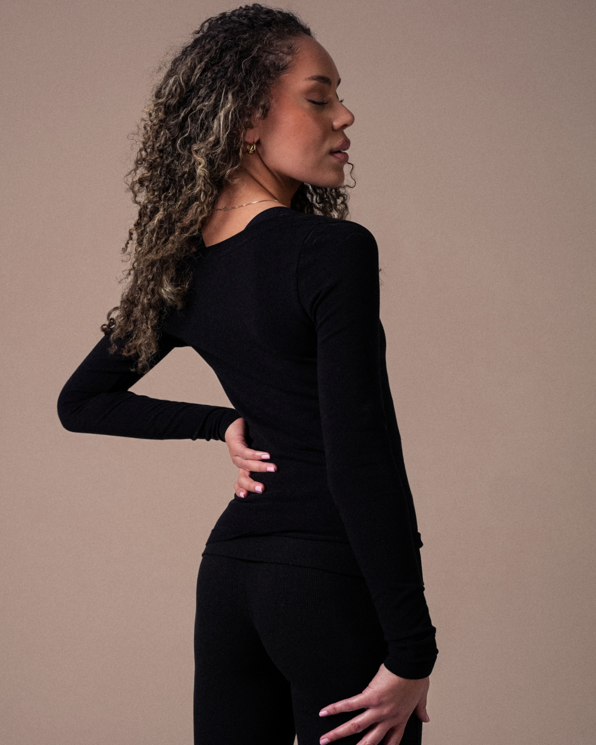 Denne tynne genseren med v-hals er en del av vår Pilates-kolleksjon, designet for både komfort og bevegelighet under trening. Den elegante v-halsen gir en flatterende passform, mens den myke, elastiske stoffet gir god strekk og støtte uten å hindre bevegelse.