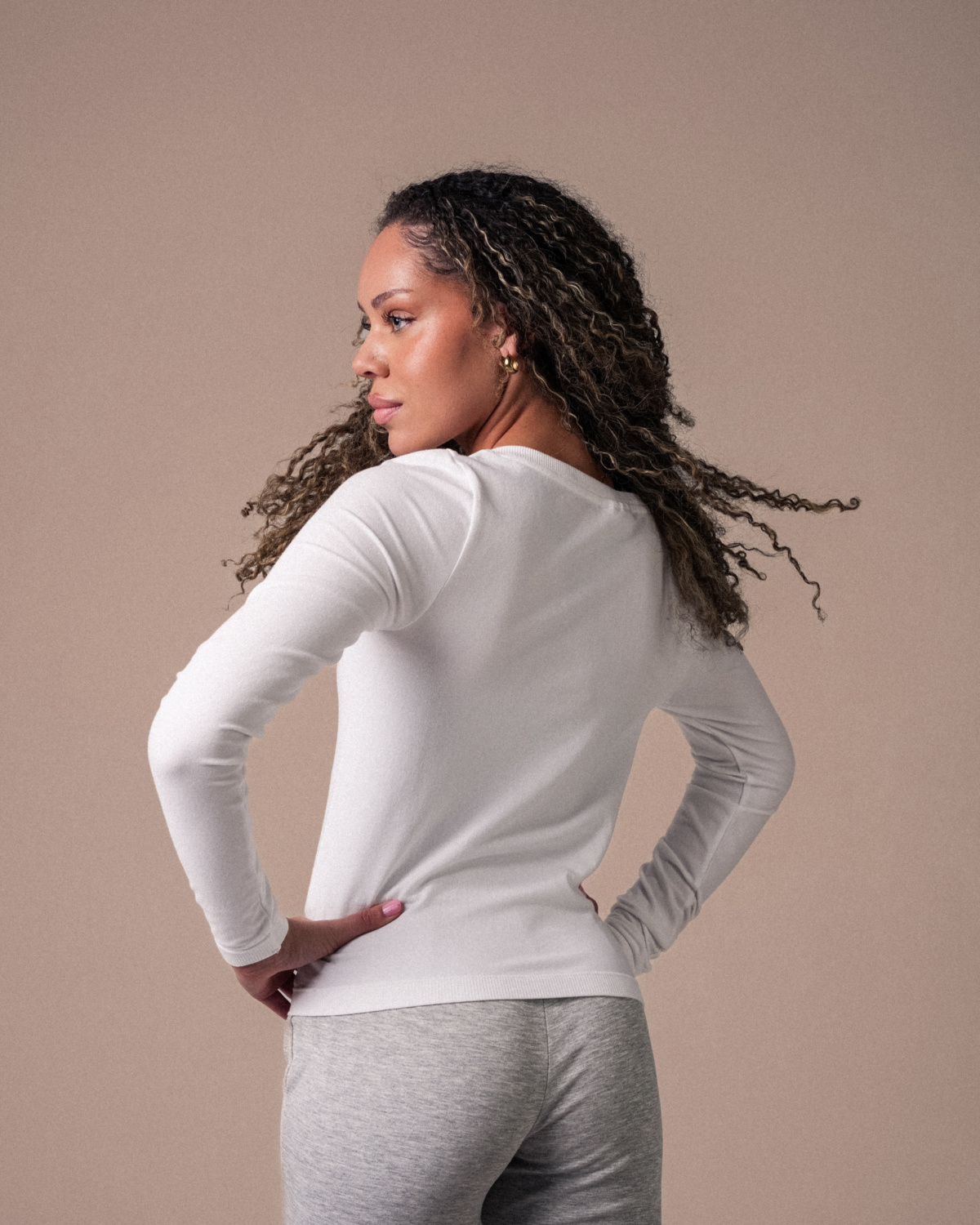 Denne tynne genseren med v-hals er en del av vår Pilates-kolleksjon, designet for både komfort og bevegelighet under trening. Den elegante v-halsen gir en flatterende passform, mens den myke, elastiske stoffet gir god strekk og støtte uten å hindre bevegelse.