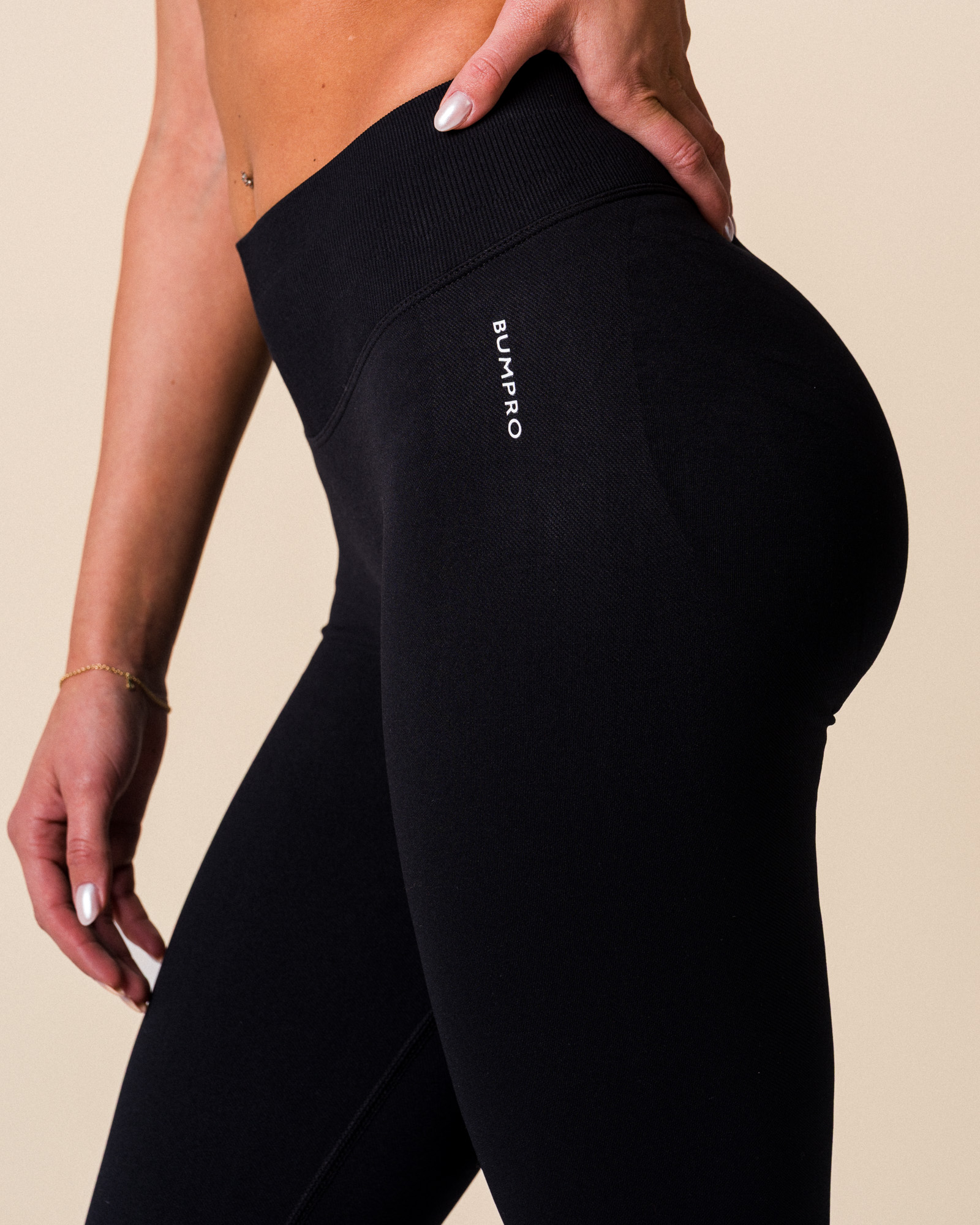 Materialet er designet med ulike strikkestrukturer: en mer komprimerende kvalitet på bena og en mykere jacquard-strikk over setet som fremhever formen. Resultatet er tights som både sitter bra, føles bra og ser amazing ut på trening.