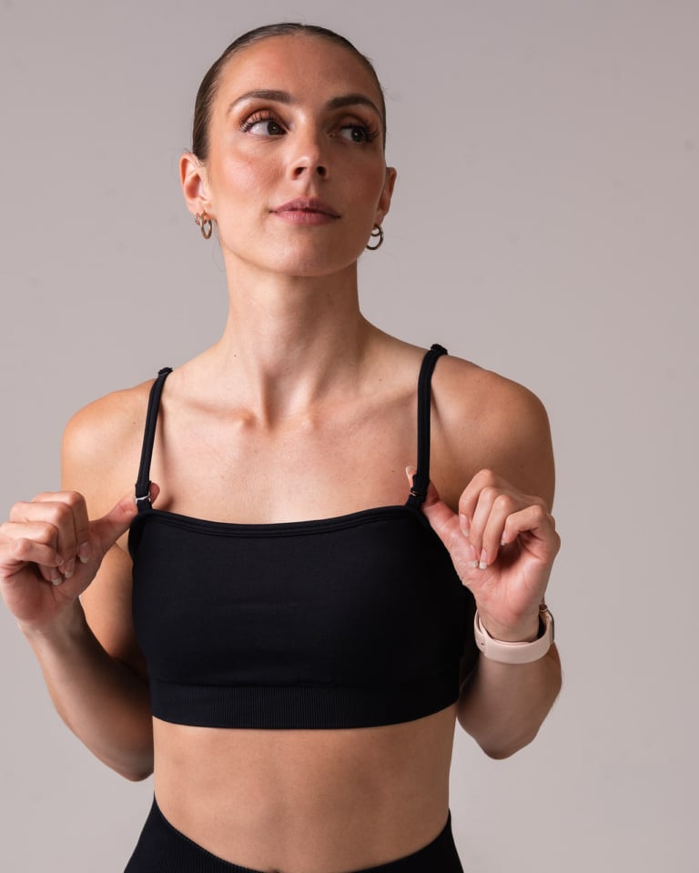 bruk dem rett over skuldrene, kryss dem bak for ekstra støtte, eller rundt nakken for en halterneck-look uten synlige stropper på ryggen. Du kan også bruke den stroppeløs for en ren og minimalistisk stil.