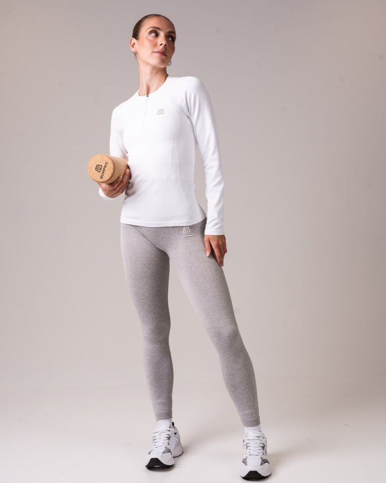 Tightsen har høyt liv, sømløs konstruksjon og et støttende waistband som holder alt på plass. Den diskré scrunchen bak fremhever formene på en naturlig måte. Designet er minimalistisk og stilrent – uten synlige logoer, kun et subtilt Bumpro-monogram på venstre hoftekam.