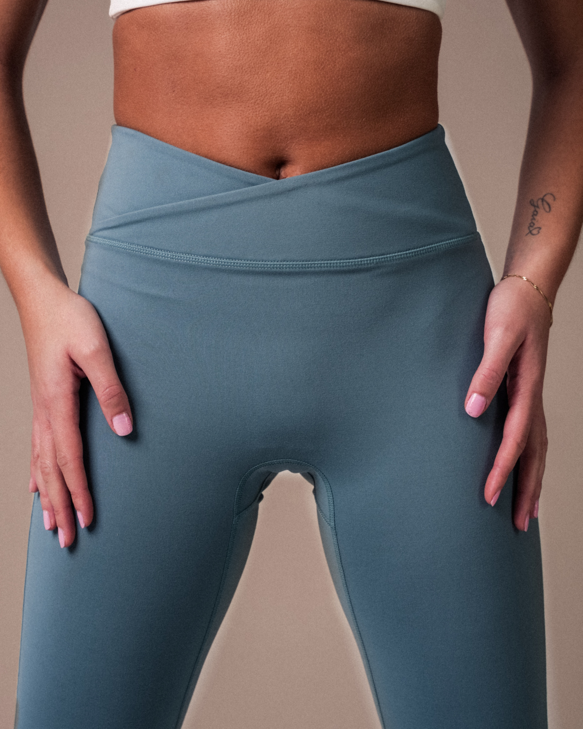 Stilren slengbukse i et utrolig mykt, peachet materiale. Designet med en trendy omlottmidje. Buksen er en flare-modell med lett utsving nederst ved bena. Den passer perfekt til studiotrening som pilates eller yoga, til økter på treningssenteret – men er også superfin til hverdags! Føles som en drøm både å trene og gå i.