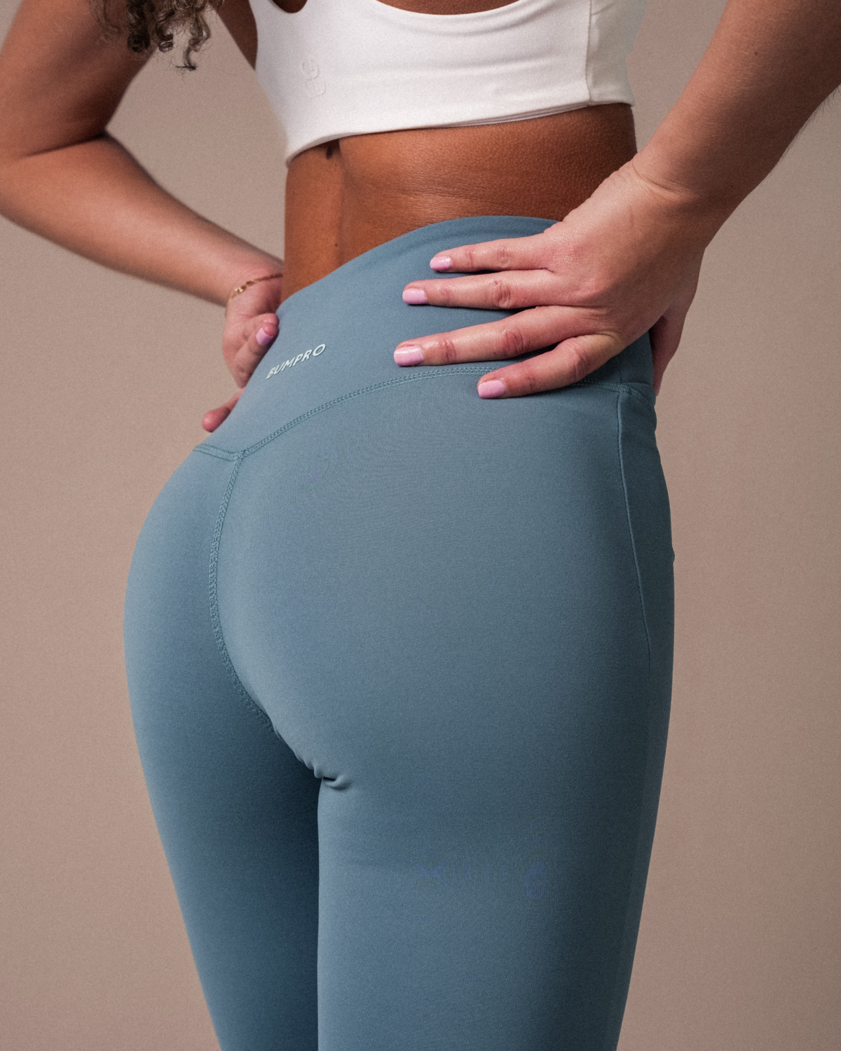 Det peachede materialet har et luksuriøst, matt uttrykk og en myk følelse mot huden. Det er tykkere og squat proof, noe som gjør det perfekt til de fleste treningsøkter, samtidig som det gir høy komfort. Materialet er elastisk for god bevegelsesfrihet og fukttransporterende, slik at du holder deg tørr og komfortabel under trening.