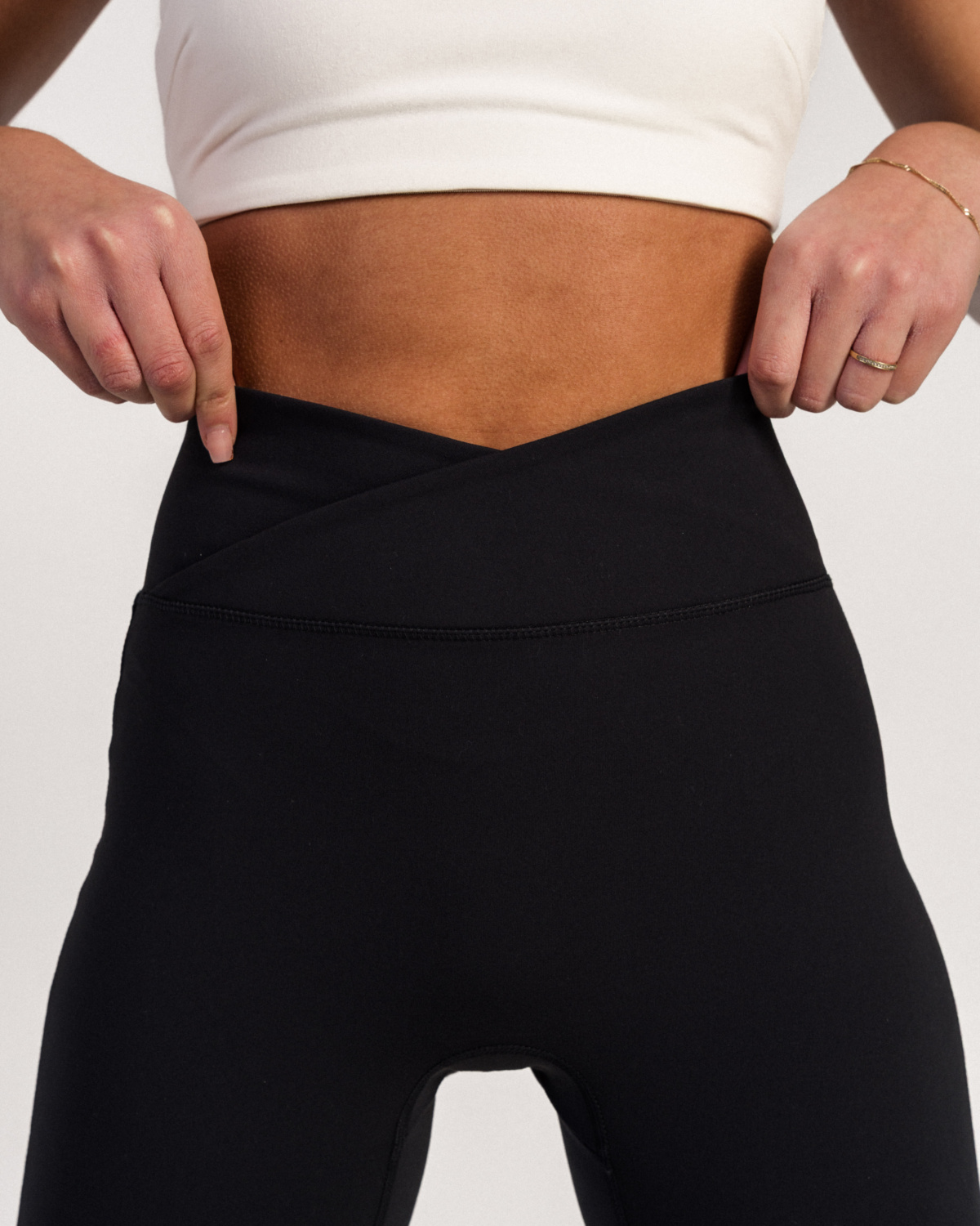 Stilren tights i et utrolig mykt, peachet materiale. Designet med en trendy omlottmidje. Disse passer perfekt til studiotrening som pilates eller yoga eller til økter på treningssenteret. Føles som en drøm både å trene og gå i.