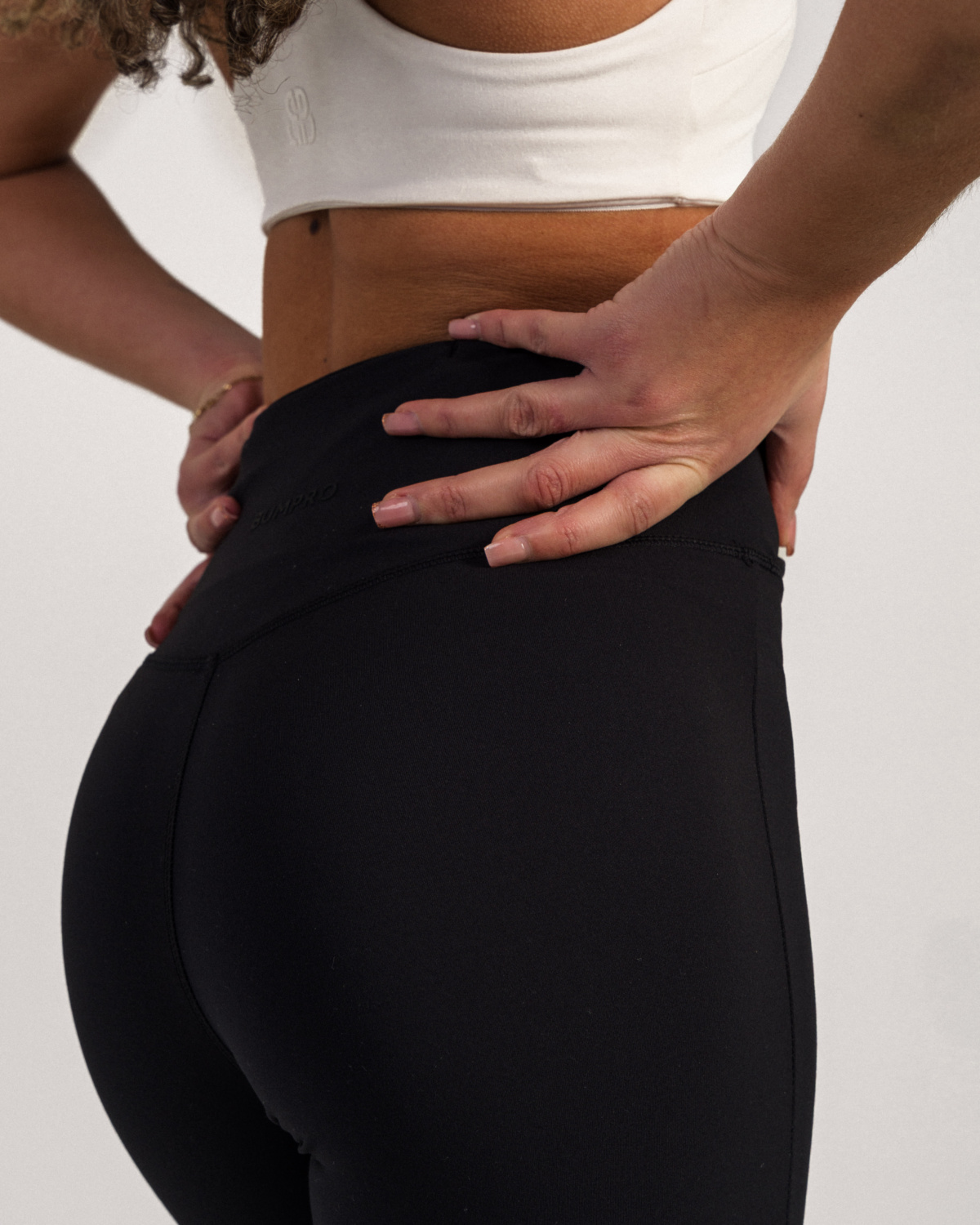 Det peachede materialet har et luksuriøst, matt uttrykk og en myk følelse mot huden. Det er tykkere og squat proof, noe som gjør det perfekt til de fleste treningsøkter, samtidig som det gir høy komfort. Materialet er elastisk for god bevegelsesfrihet og fukttransporterende, slik at du holder deg tørr og komfortabel under trening.