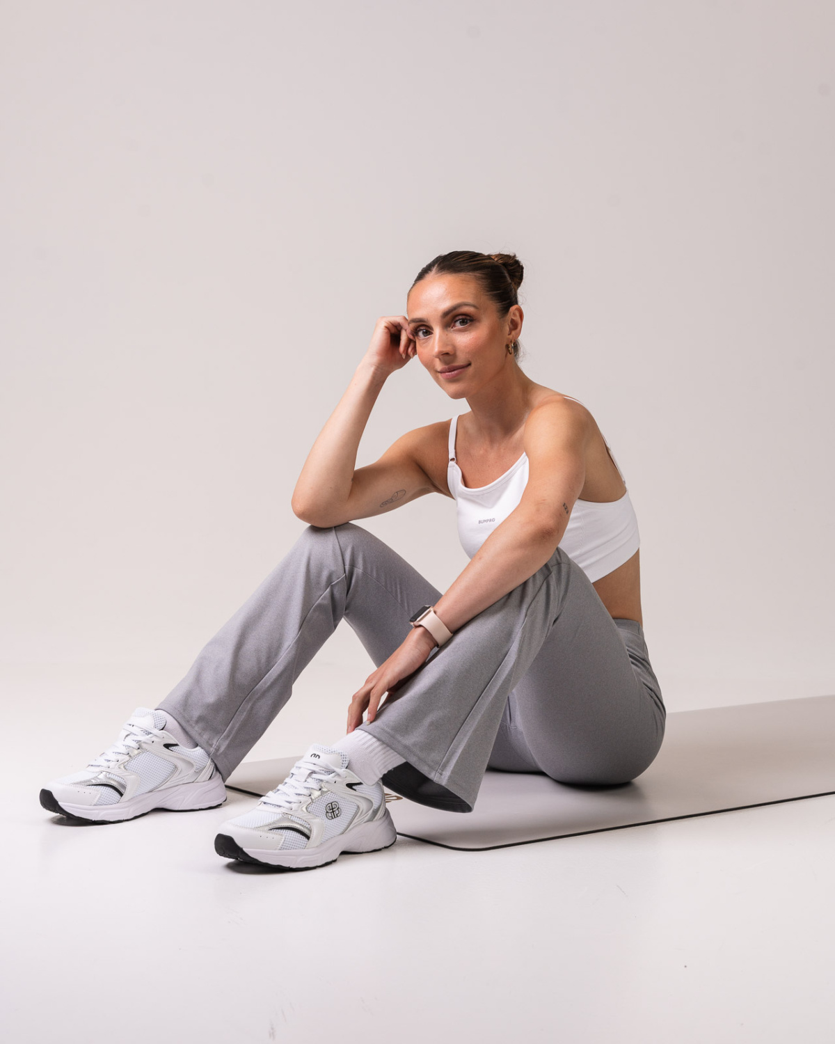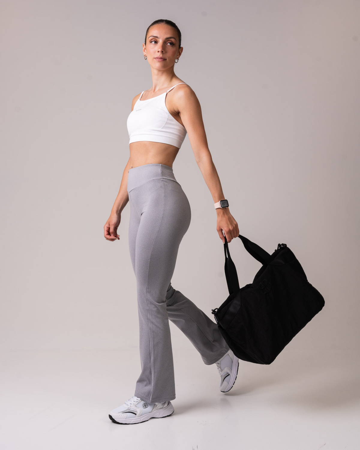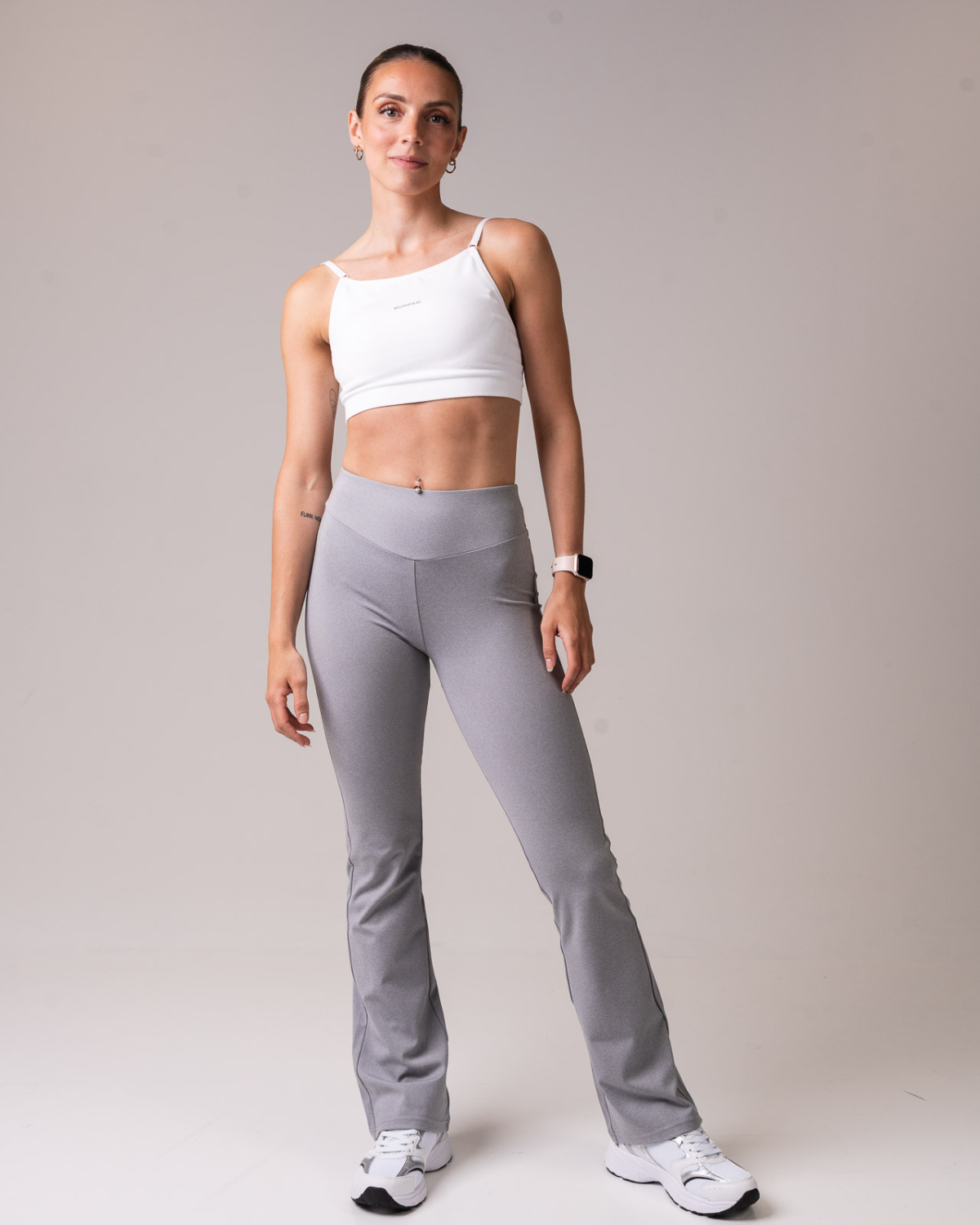 Flatterende "flare"-bukser med V-form søm foran og bak. Dobbelt fôret linningen med meshmaterialer gjør buksen behagelig og pustende til alt av aktiviteter. Buksen har flare ben fra midt på leggen og ned. Myk elastikk i midjen og log print bak. Elegant og enkelt design som kan brukes i hverdagen og i aktiviteter.
