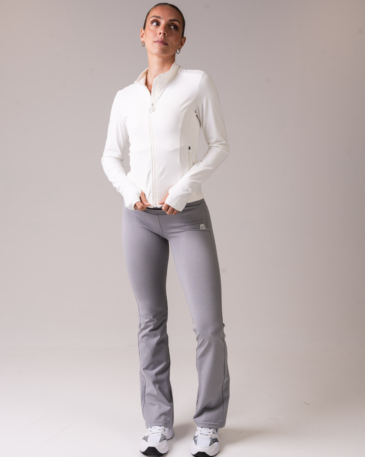 Flatterende "flare"-bukser med med nedbrettbar midje. Dobbelt fôret linningen med meshmaterialer gjør buksen behagelig og pustende til alt av aktiviteter. Buksen har flare ben fra midt på leggen og ned. Myk og behagelig i midjen. Elegant og enkelt design som kan brukes i hverdagen og i aktiviteter.
