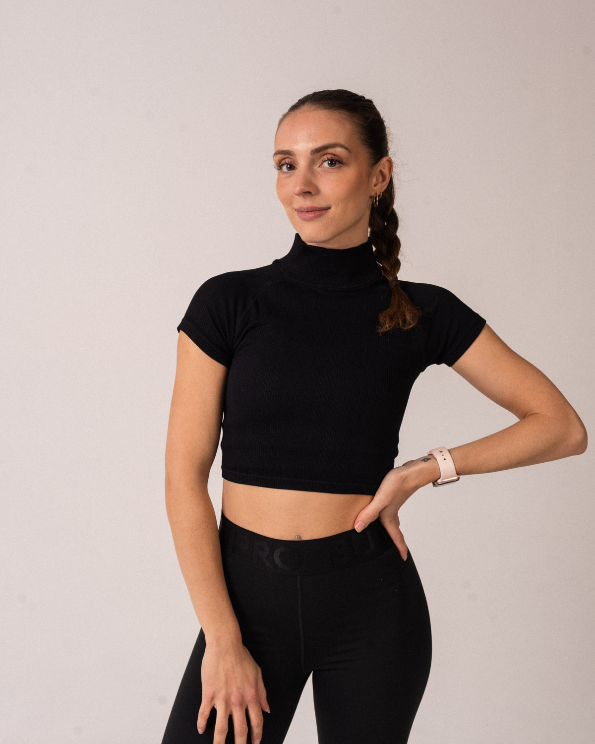 Sett med Bumpro Perfect Rib Crop Tee Turtleneck Black og Bumpro Lively Tights Black
