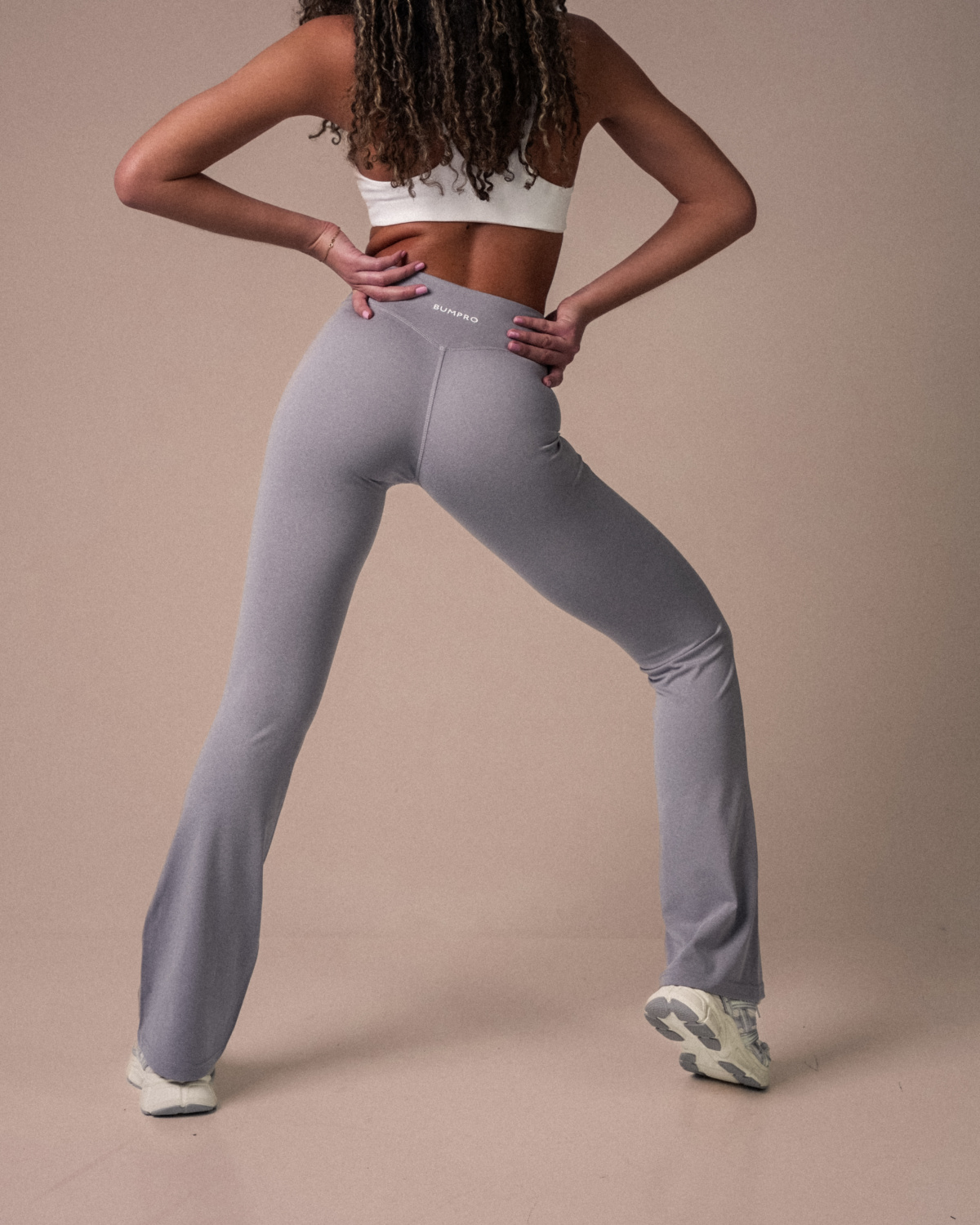 Stilren flare-bukse i et utrolig mykt, peachet materiale. Designet uten frontsøm for å unngå «cameltoe»-effekt. Den har en V-formet bakside som skaper en smigrende silhuett, og et lett utsving nederst ved bena. Buksa passer perfekt til studiotrening som pilates eller yoga, til økter på treningssenteret – men er også superfin til hverdags! Føles som en drøm både å trene og gå i.