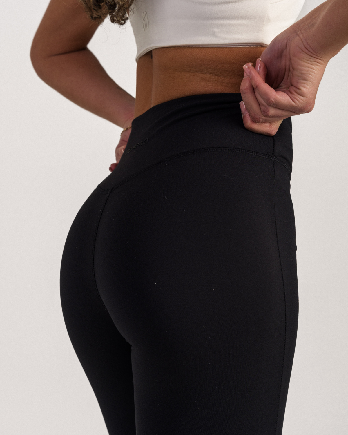 Stilren tights i et utrolig mykt, peachet materiale. Designet uten frontsøm for å unngå «cameltoe»-effekt. Den har en V-formet bakside som skaper en smigrende silhuett. Disse passer perfekt til studiotrening som pilates eller yoga eller til økter på treningssenteret.