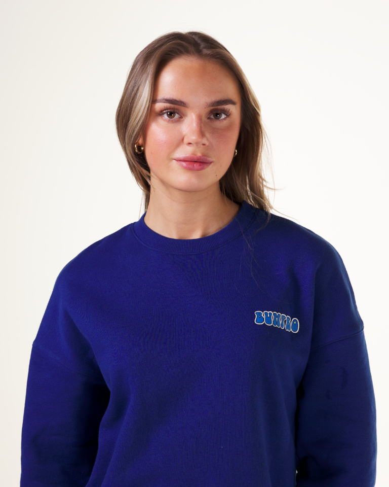 Veldig komfortabel og fin, oversized crewneck, selvfølgelig med rund hals. Du får elastisk og fleksibel linning og mansjetter på ermendene. Og veldig stilig grafisk logo i midten av brystet og på ryggen.