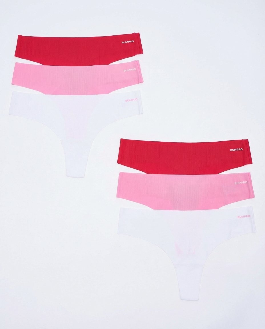 - 2x Bumpro 3-pack No Show Thong Rib (Pink/Red/White)