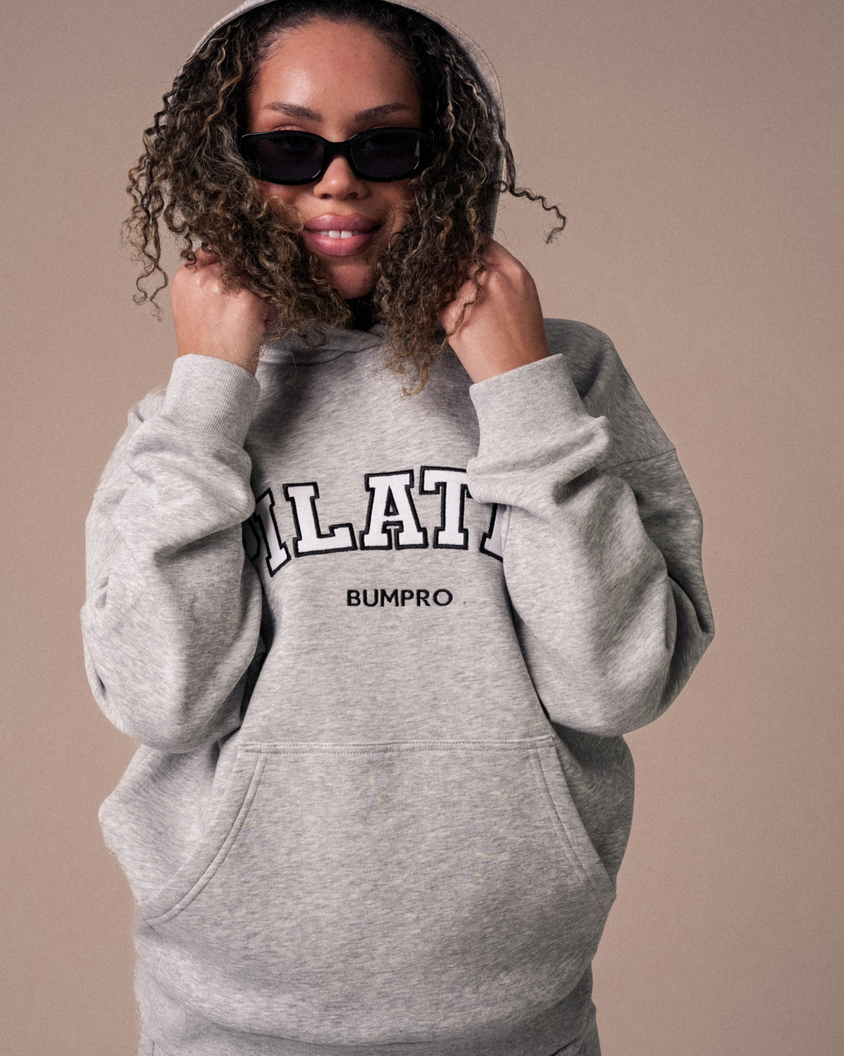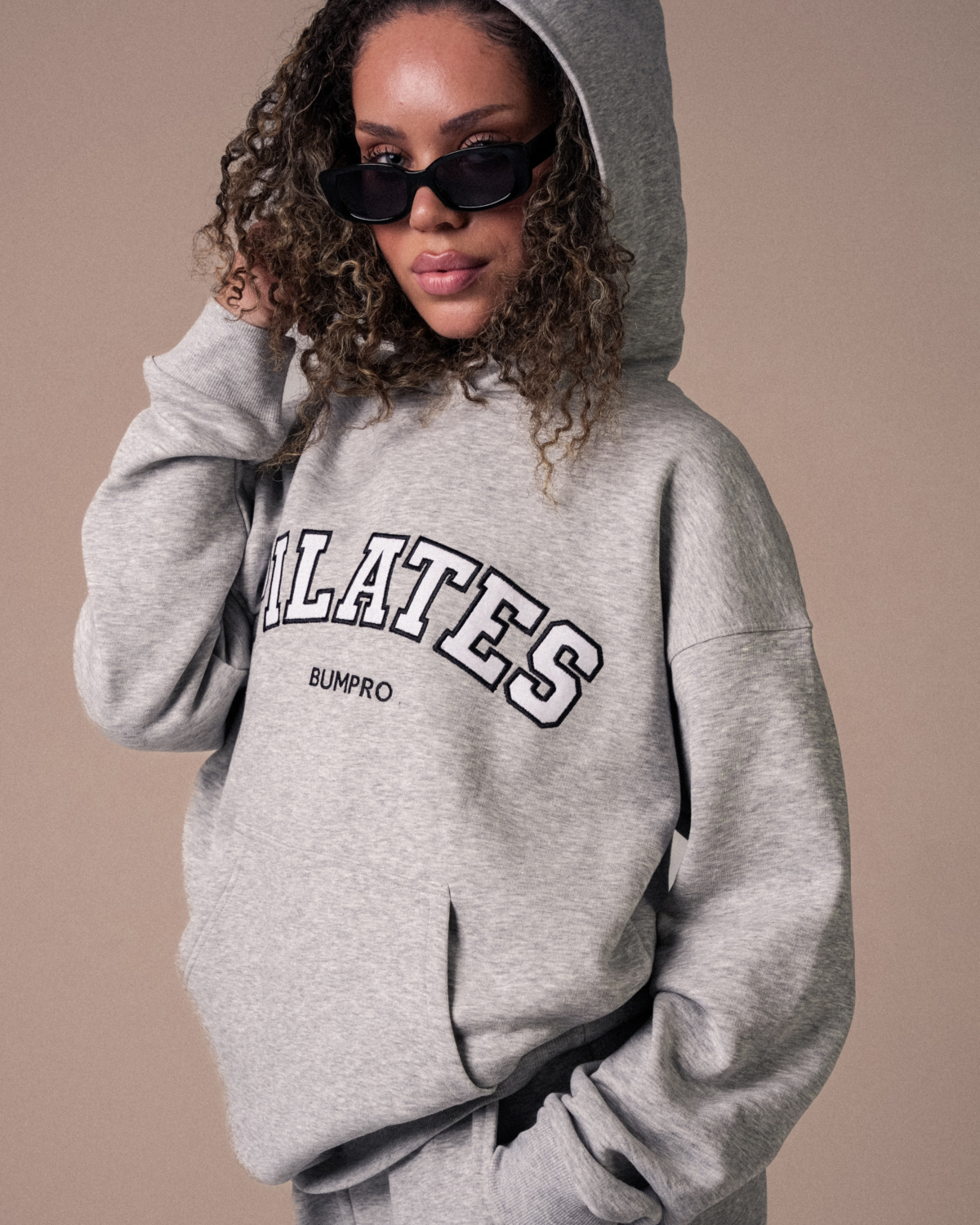 Oversized hettegenser med Pilates og Bumpro logo i front. Med sitt myke, bomullstoff er den ideell for både trening og hverdagsbruk, og den romslige passformen gir deg frihet til å bevege deg fritt, enten du er på vei til en pilatestime eller slapper av hjemme.