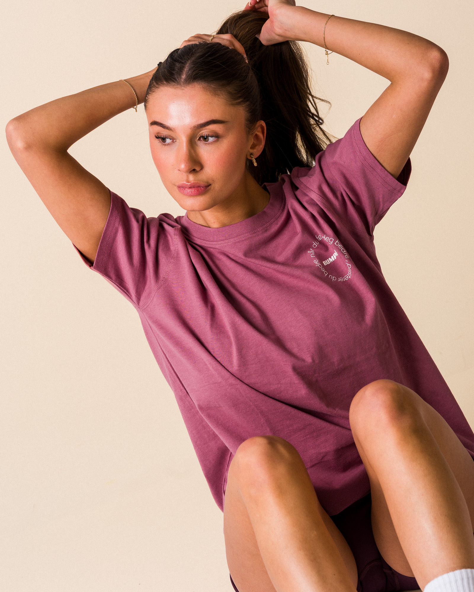 Denne oversized t-skjorten kombinerer komfort og stil på en avslappet måte. Den er laget av 100 % bomull og føles myk og behagelig mot huden. Med rund hals og senkede skuldre får du en trendy passform som er enkel å style – enten du går for en sporty eller casual look. Passer perfekt både til hverdags og trening.