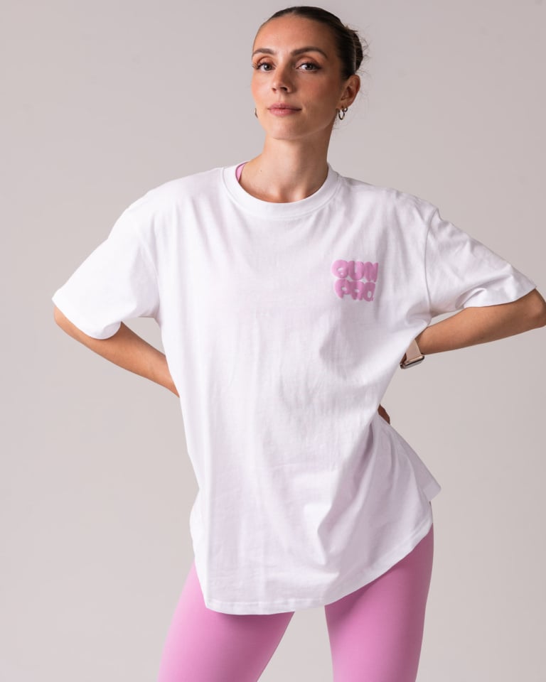 Denne oversized t-skjorten er designet for kvinner. T-skjorten er laget av 100% bomull, og er utrolig myk og behagelig å ha på seg. Den har en rund hals og senkede skuldre, som gir en avslappet og behagelig passform.