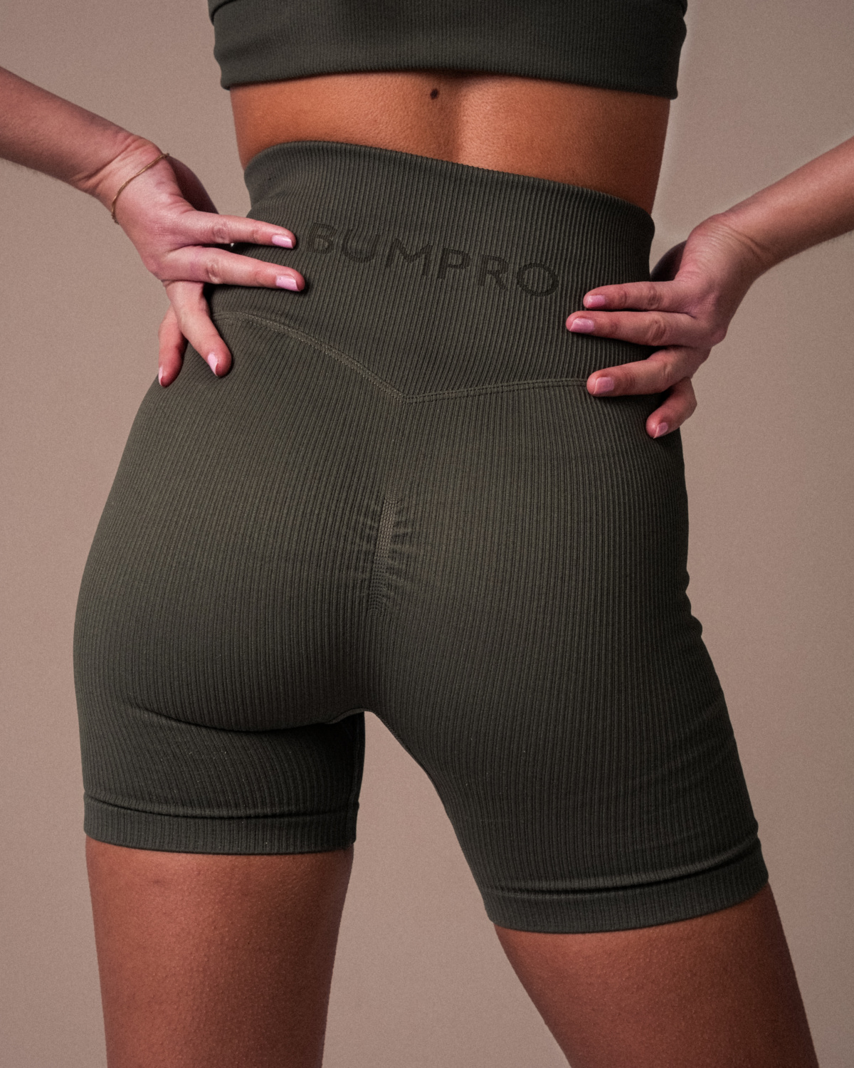 Skikkelig fine ribbestrikkede shorts i hudnær passform og beinlengde på 12,7 cm . Du får scrunch-effekt på rumpepartiet som fremhver dine feminine kurver. Bred og elastisk midje som ser veldig moderne ut - innpreget BumPro-logo på baksiden av midjebåndet.