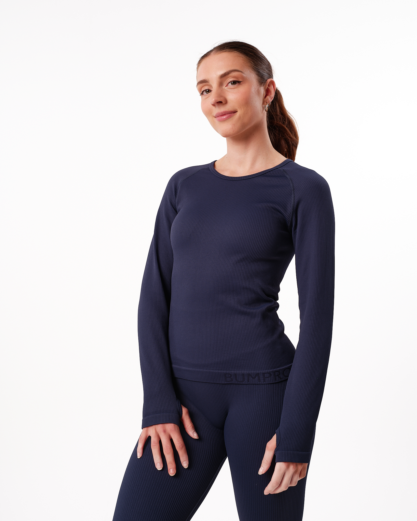 Genser med rund hals og rib-mønster over hele. Den er stilren, kun en Bumpro-print øverst på ryggen. Materialet er tykt, har stretch i stoffet, puster og har god bevegelighet. Du finner også tommelhull på den. En stram og slank look som fremmer kroppens konturer. Genseren passer til det meste av trening, men kanskje aller mest til styrketrening, trening på gym eller til bruk i hverdagen.