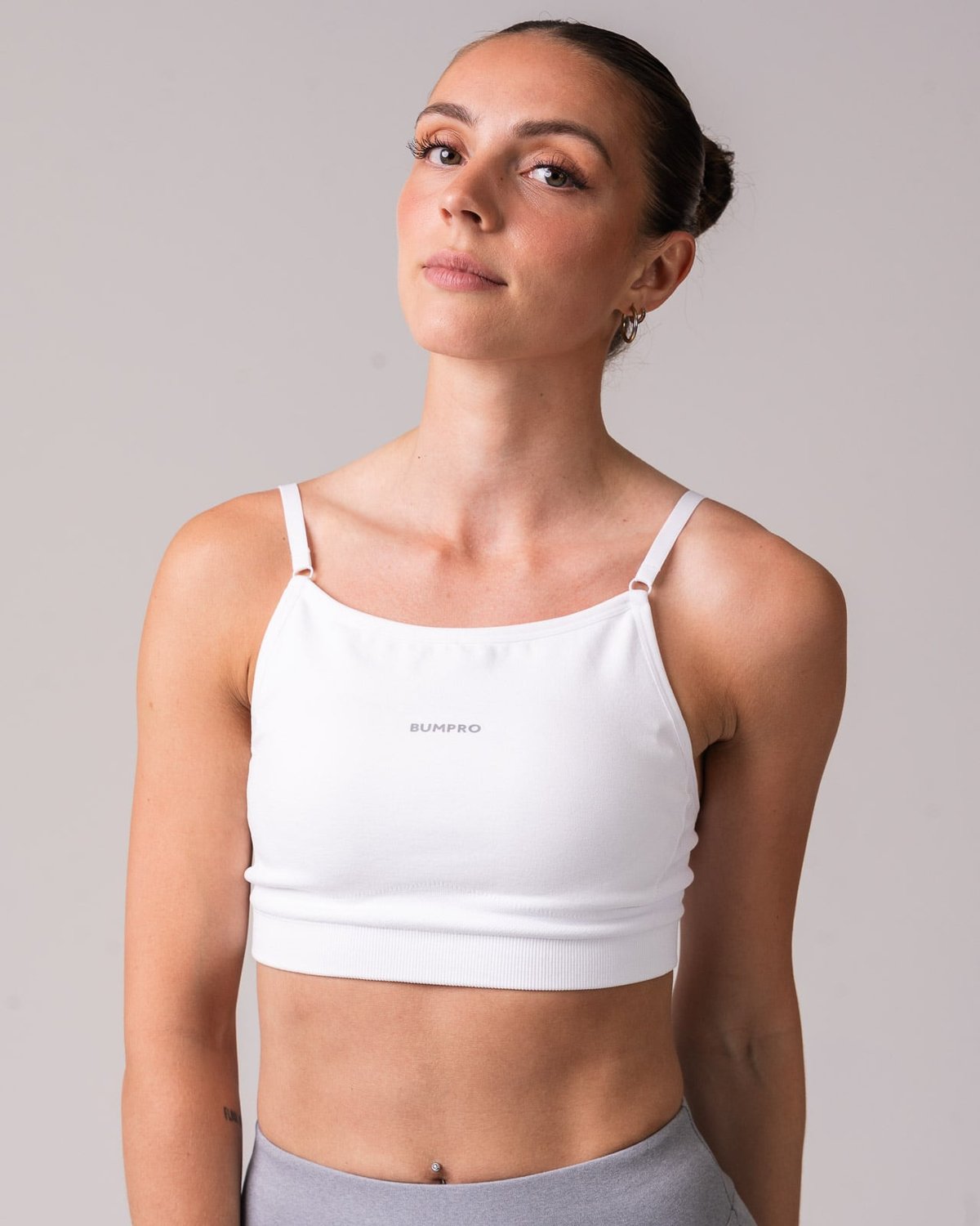 Bumpro Power Up! Bra White Brilliant er en seamless sports-BH designet for lett trening og yoga. Den er utrolig behagelig på kroppen og har en oppdatert logo på ryggen som gir et moderne preg. Med uttakbare innlegg og gode svettetransporterende egenskaper, holder du deg fresh gjennom hele økten.