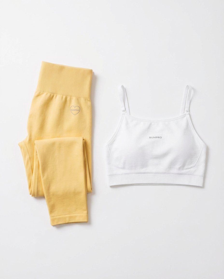 - Bumpro Power Up! Bra White Brilliant: Den ideelle partneren til tightsen. Dette er en superbehagelig, sømløs sports-BH utviklet for lav-intensitets trening som yoga eller lett styrketrening. Den hvite fargen gir en lekker kontrast til den gule tightsen, og med uttakbare innlegg og svettetransporterende materiale, holder du deg både tørr og selvsikker.