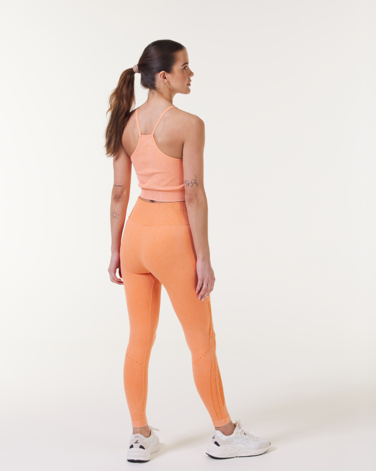 Sømløs, yoga vennlig tights som gir deg en stram og fleksibel passform. Med høy ribbestrikket midje som justerer seg etter kroppen. Meshbaserte og vanlige hullstrikk på siden, som går fra midjen og helt ned til beinet. Flatlock søm som går ned i midten av baksiden. Utenom en logo på ytterste på venstre side av hoften, er den stilren. Gir deg støtten du trenger og holder deg sval gjennom økten.