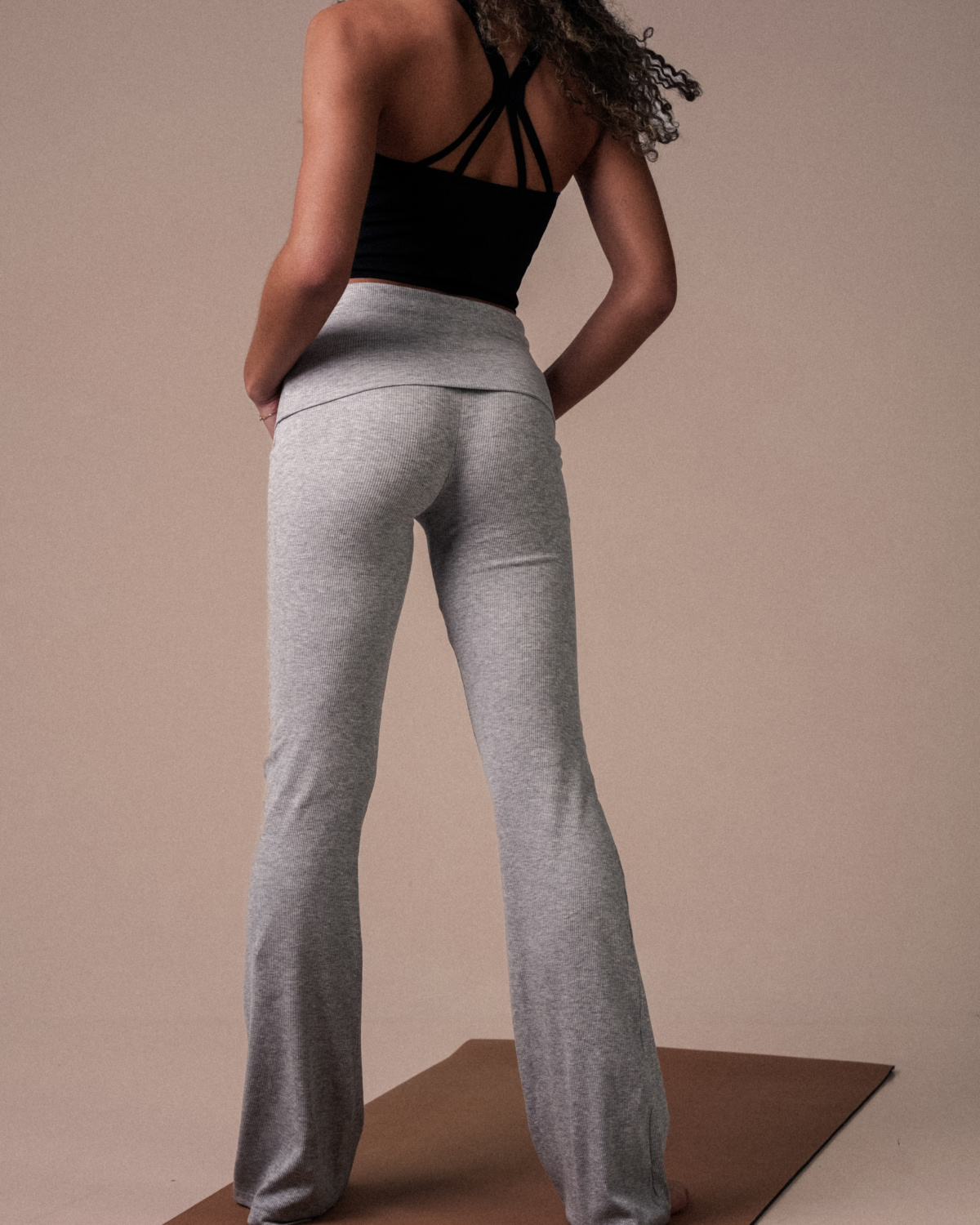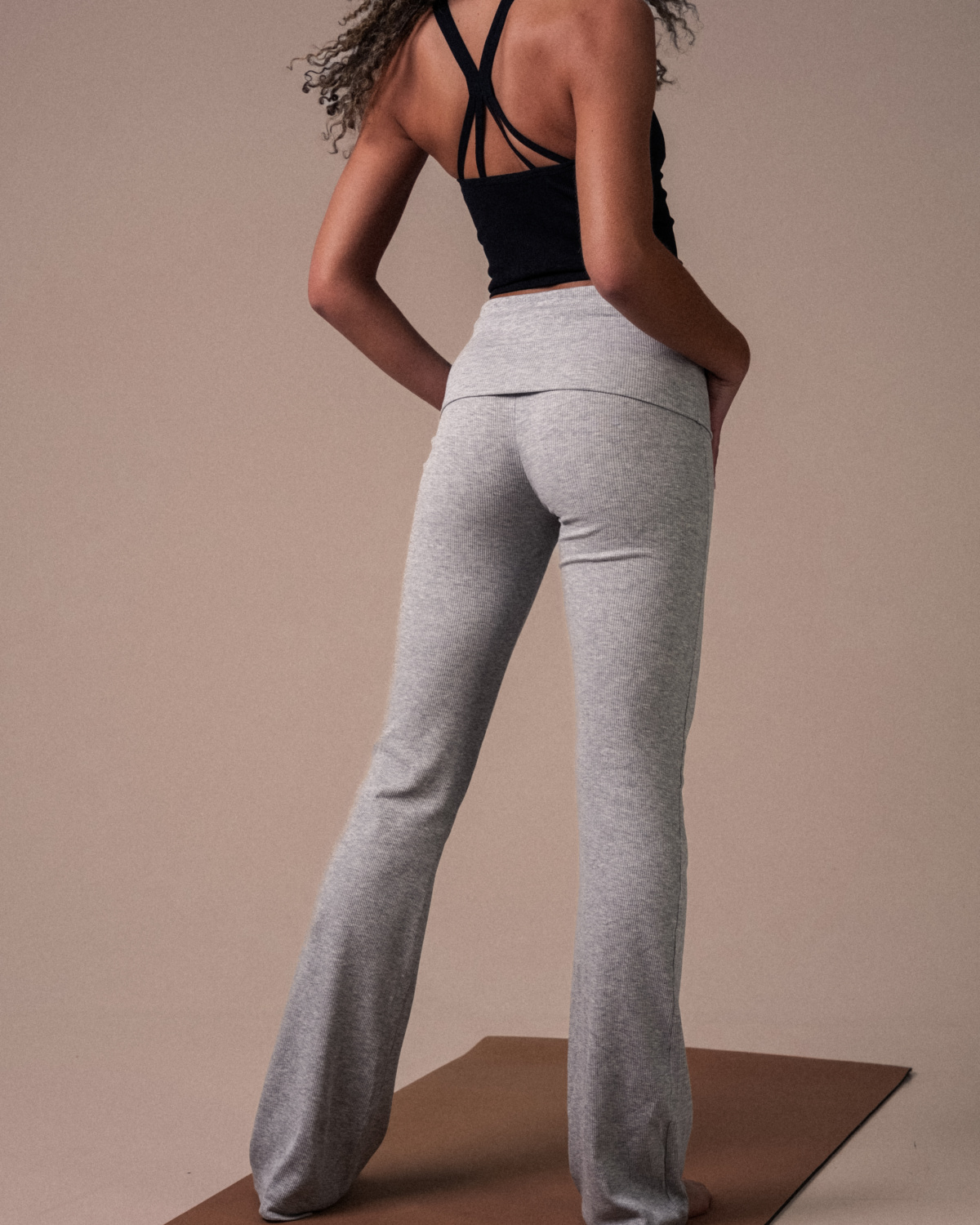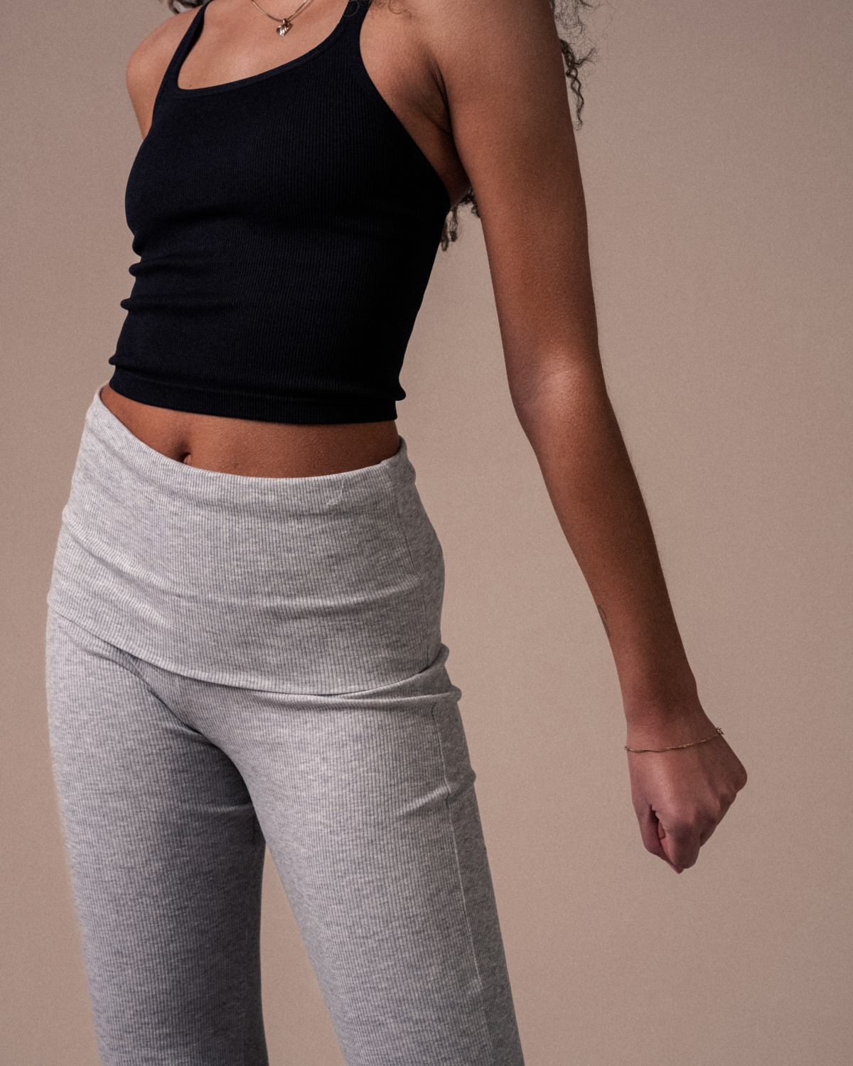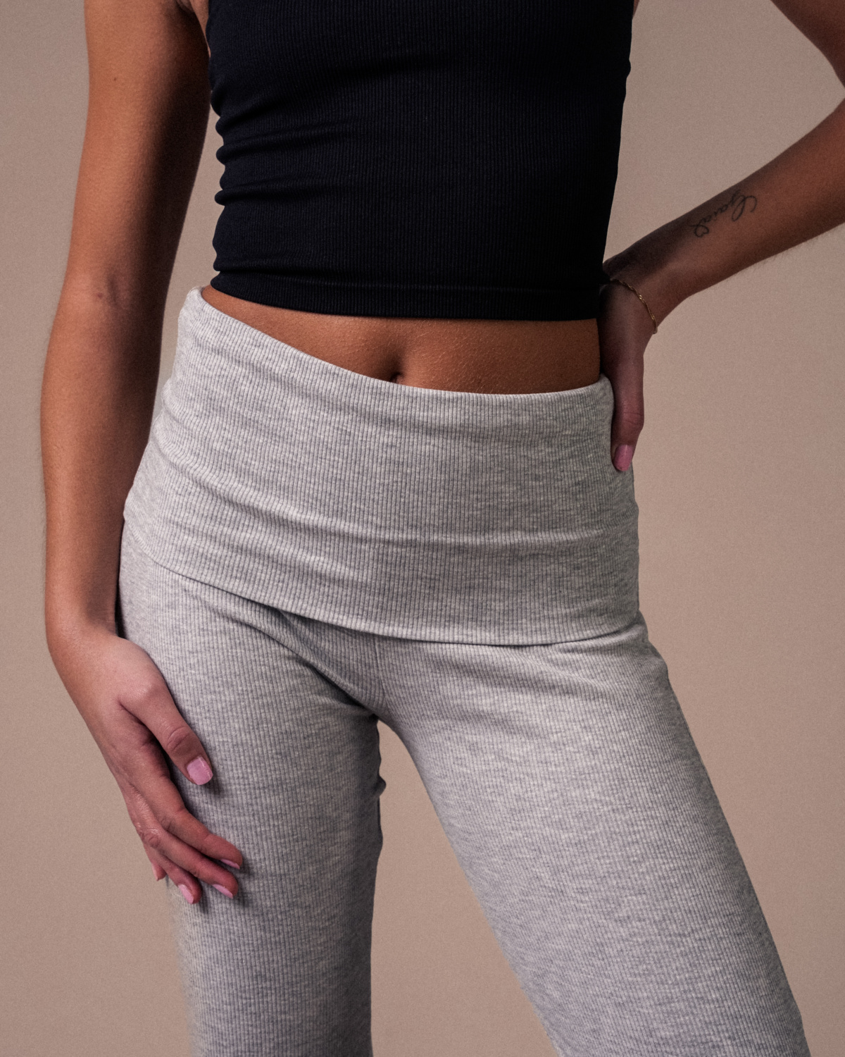 Disse ribbete foldover-buksene er det ultimate valget for komfort og stil. Laget i et mykt, elastisk stoff, som gir de en perfekt passform som både er behagelig og flatterende. Den ribbede teksturen gir en luksuriøs følelse mot huden.