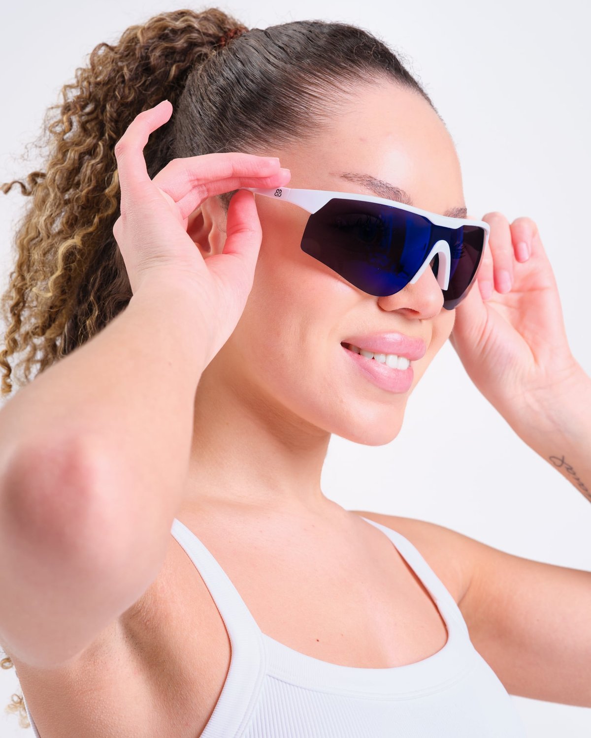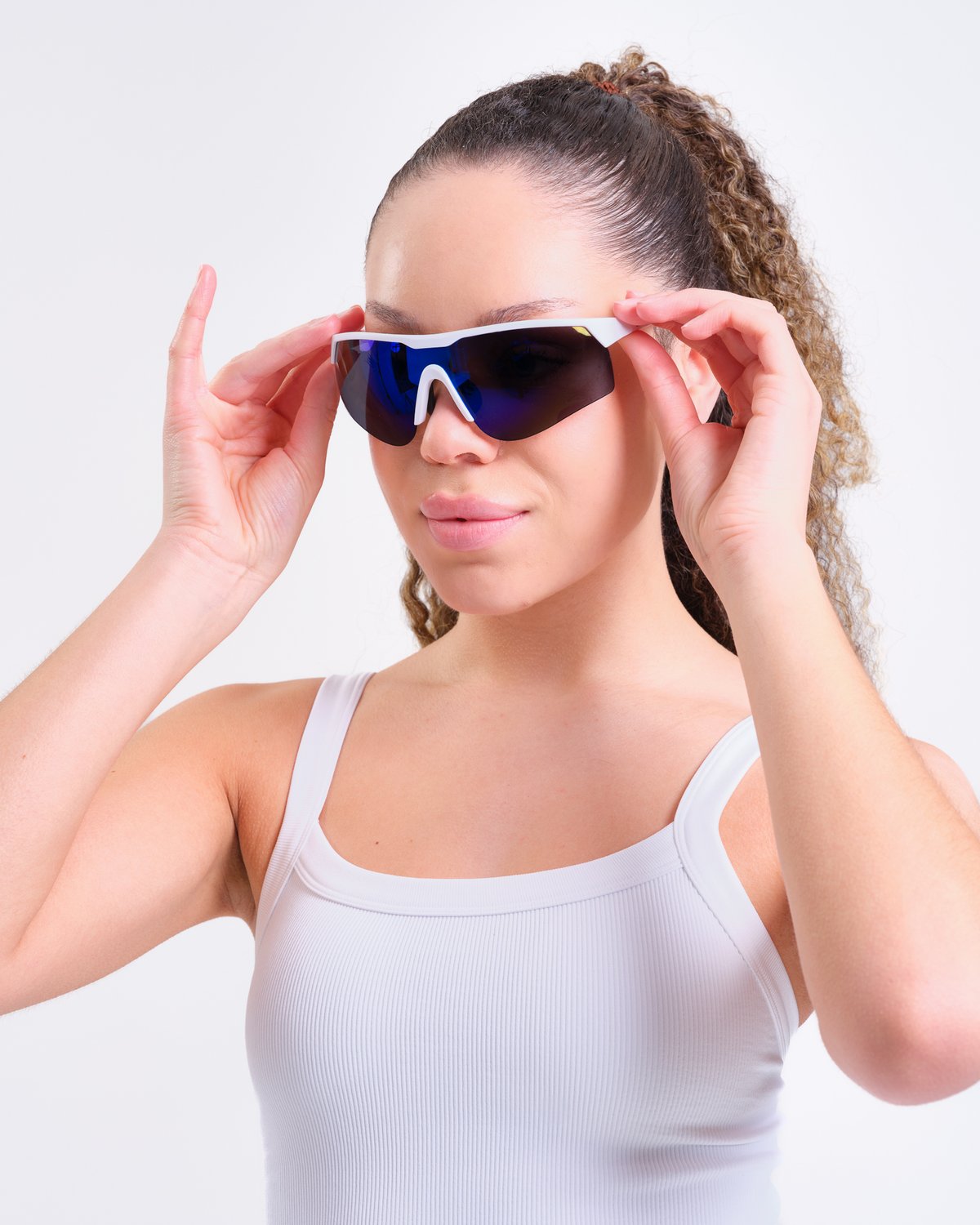 - Bumpro Sundazed Sports Glasses White/Blue: En frisk og moderne fargekombinasjon som virkelig skiller seg ut. Den hvite rammen i kombinasjon med blå glass gir et energisk løft til treningsantrekket ditt.