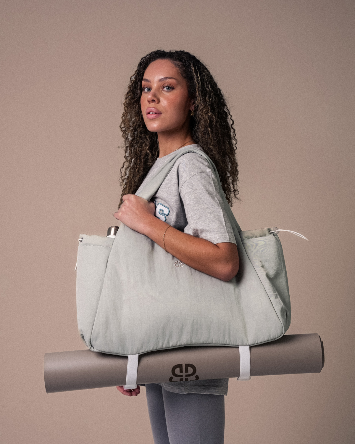 Denne romslige og elegante treningsvesken er designet for deg som vil ha både funksjon og stil på vei til yoga- eller pilatestimen. Vesken har justerbare stropper under som holder yogamatten sikkert på plass – diskret integrert slik at vesken ser like fin ut enten du har med matte eller ikke.