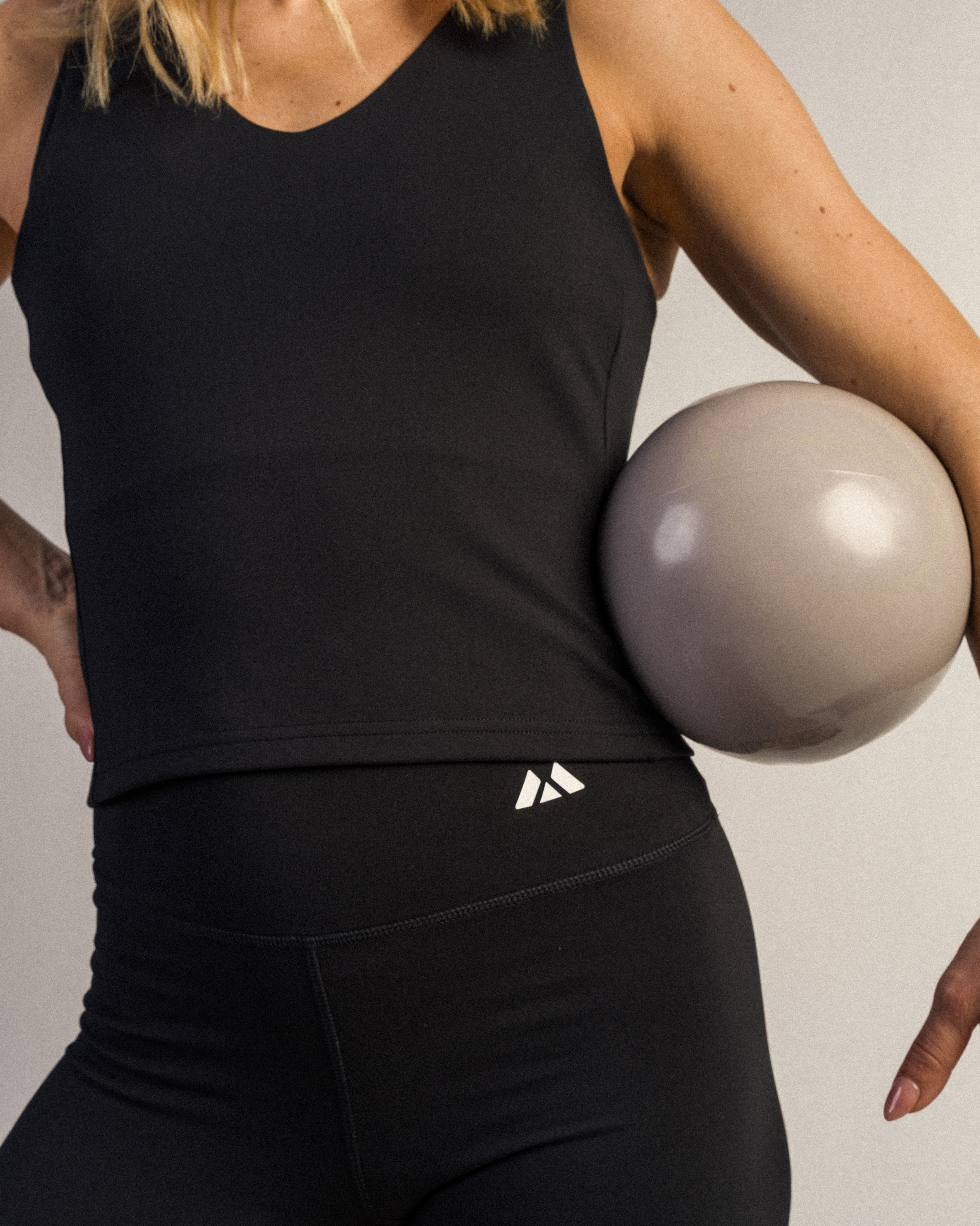 En treningssinglet med feminin V-hals, laget i en myk kvalitet med børstet overflate. Stoffet føles silkeaktig mot huden og gir en luksuriøs opplevelse hele dagen.