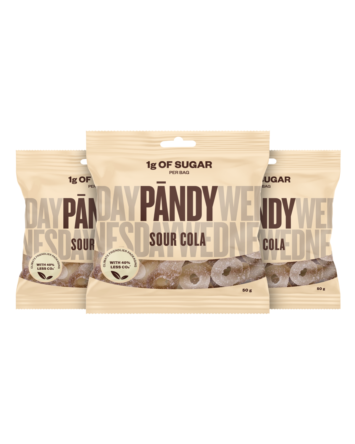 Cola Dummies By Klara er et samarbeid mellom Pändy og den svenske influenceren Klara Elvgren, @tanbyklara. Etter suksessen med hennes to første poser, Cherry By Klara og Strawberry/Liquorice By Klara, har hennes tredje pose nå kommet! De klassiske sure cola-flaskene, en av hennes favoritter, har nå blitt “Pändyfied” med kun 1g sukker per pose.
