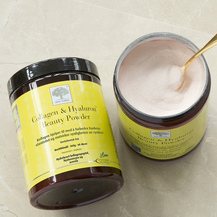 - Kollagenpulver med hyaluronsyre og vitamin C.