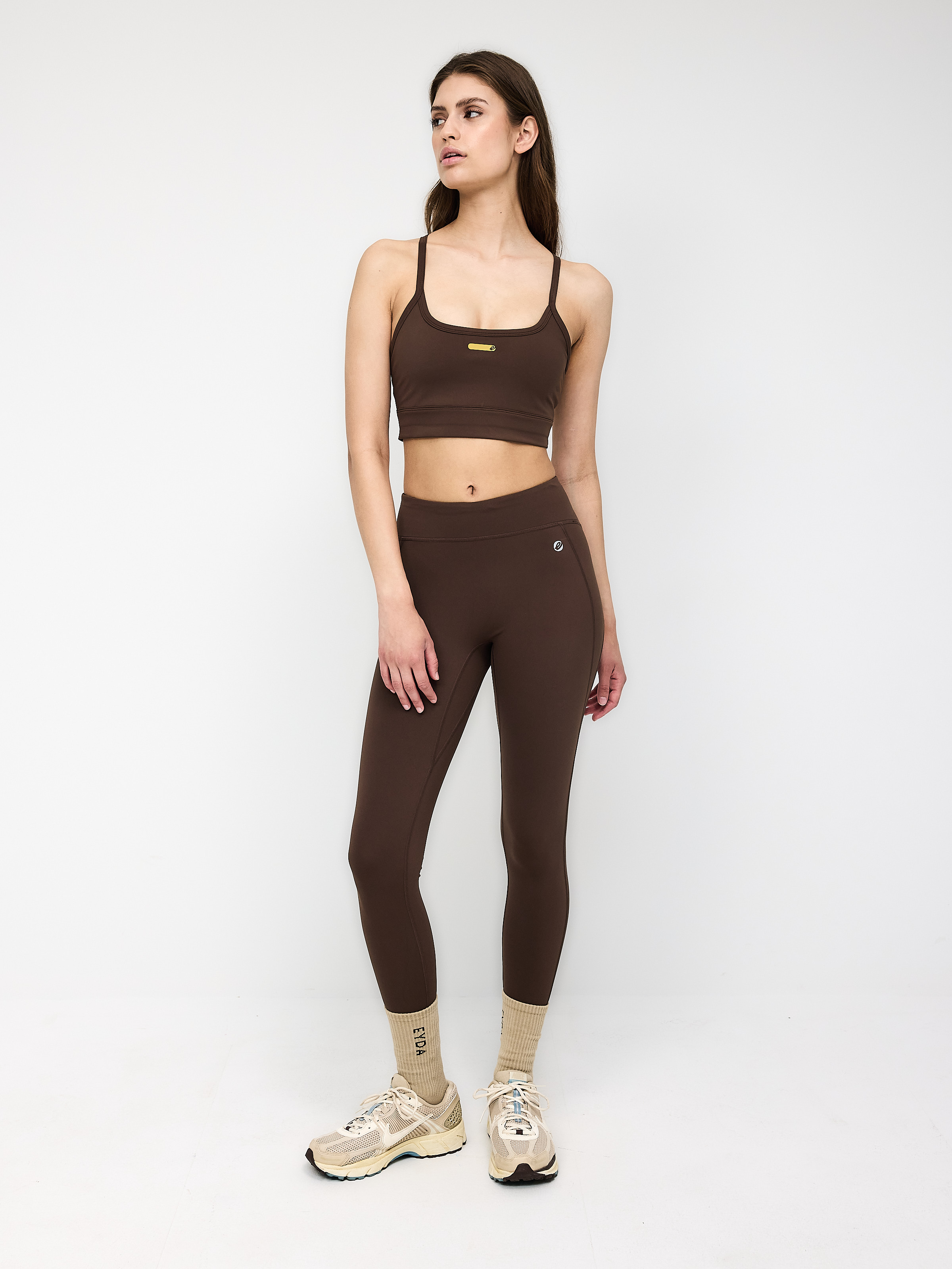 En myk sports-BH med avtagbare innlegg og fine, feminine detaljer som rund utringning og kryssdetaljer på ryggen. De tynne stroppene kan justeres. På toppen av det 5 cm brede midjestykke, det er fast strikk som sikrer optimal støtte og komfort.