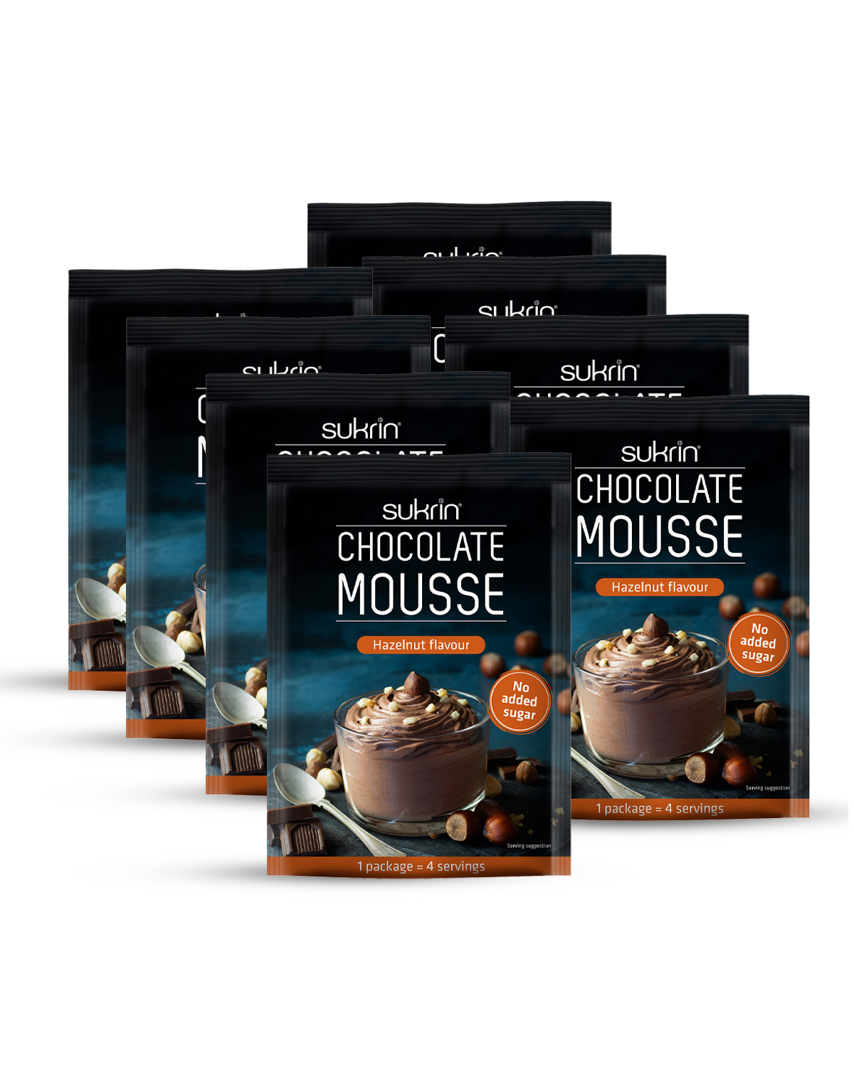 Som en variasjon på den populære sjokolademoussen, lanseres nå en variant med nydelig hasselnøttsmak. Den har samme fløyelsmyke konsistens, og er naturlig søtet med Sukrin og stevia. Inneholder ikke hasselnøtt.