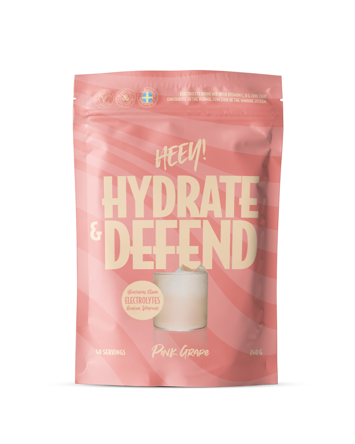Heey! Hydrate & Defend tilbyr ikke bare elektrolytter for å støtte kroppens væskebalanse, men også kraftige vitaminer og mineraler for å hjelpe deg med å holde deg på topp, både fysisk og mentalt. Designet for å passe både treningsrutinen og hverdagen din.