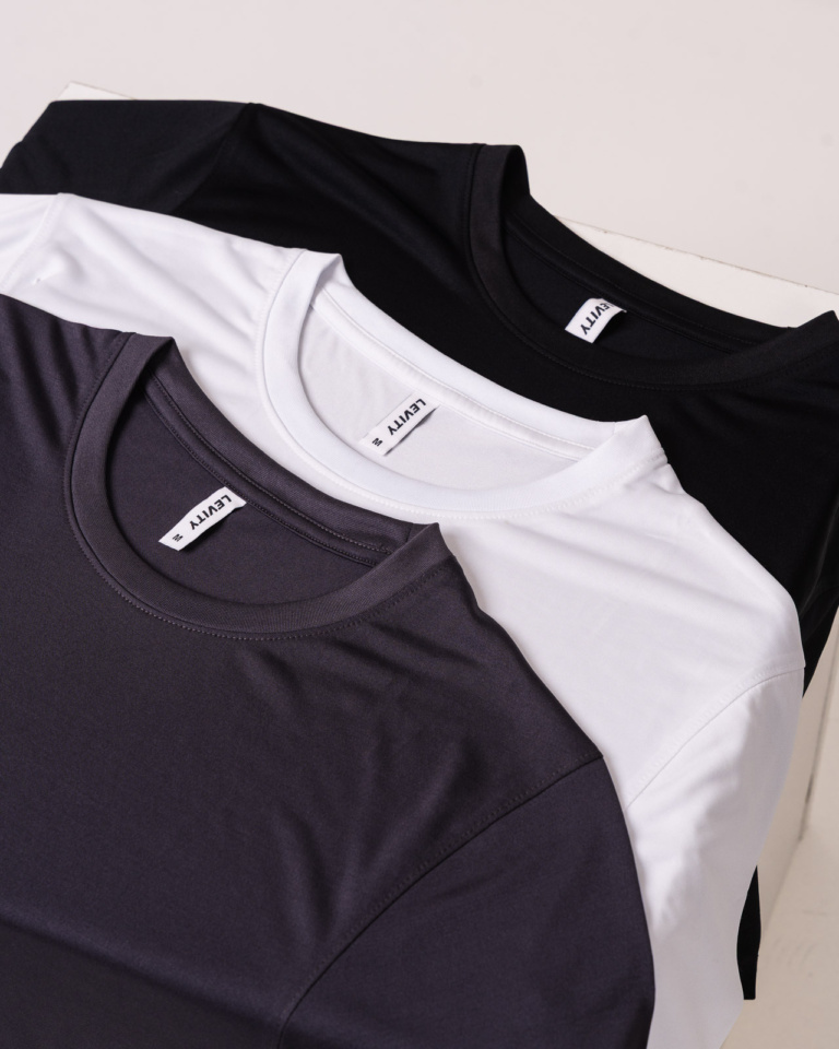 Denne produktet inneholder 3 funksjons-T-skjorter: 1 svart, 1 hvit og 1 grå.